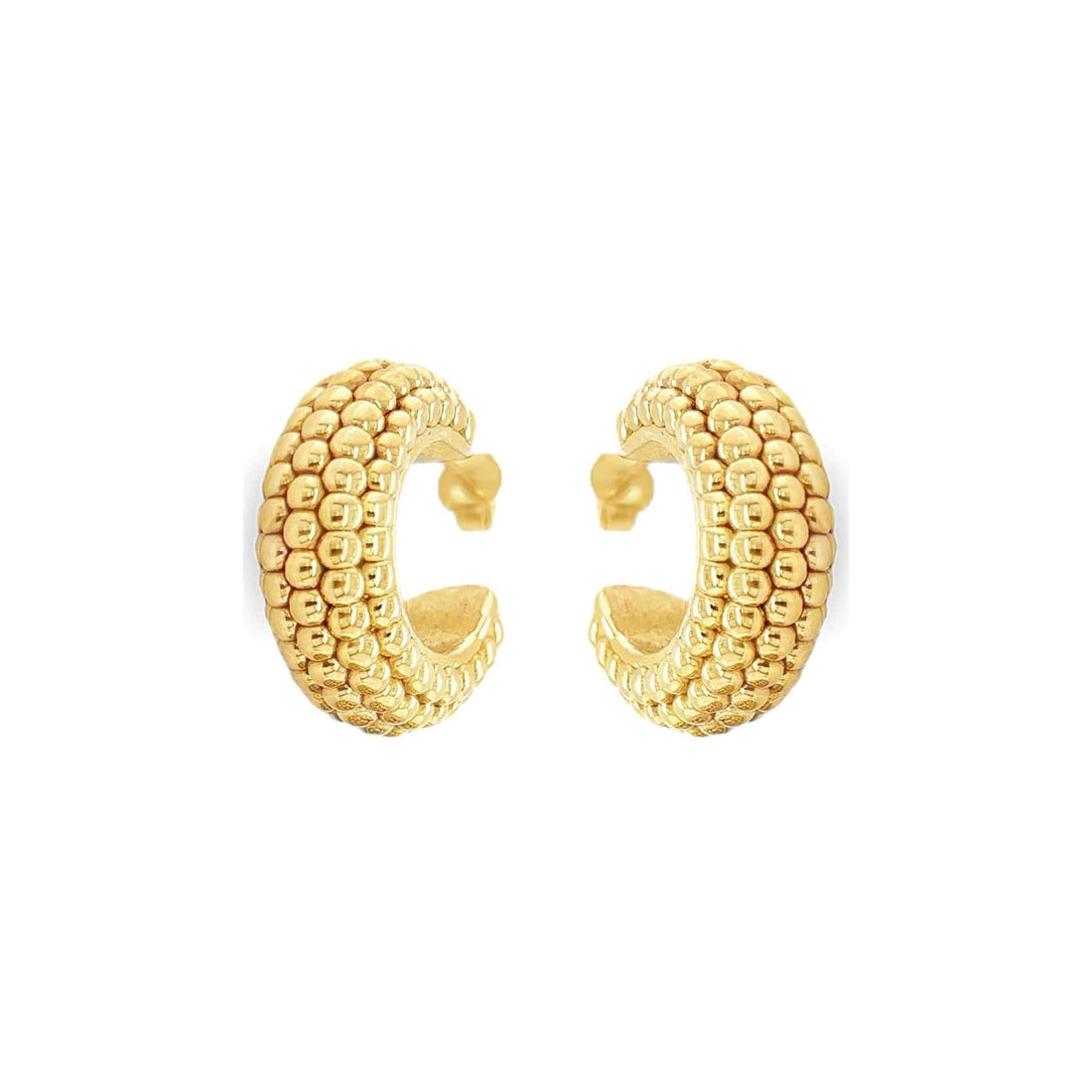 The Beaded Luxe Hoop Earrings by Miapia redefine opulence with their intricate, textural design. Featuring a...
