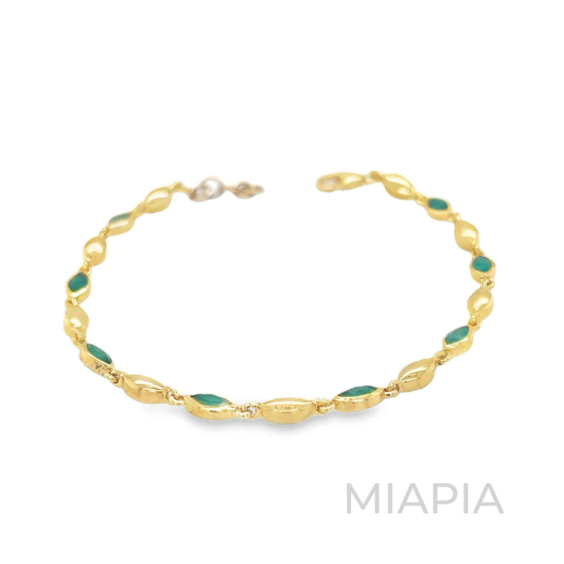 Grace your wrist with the enchanting Emerald Ripple Bracelet by Miapia. Featuring a flowing design...