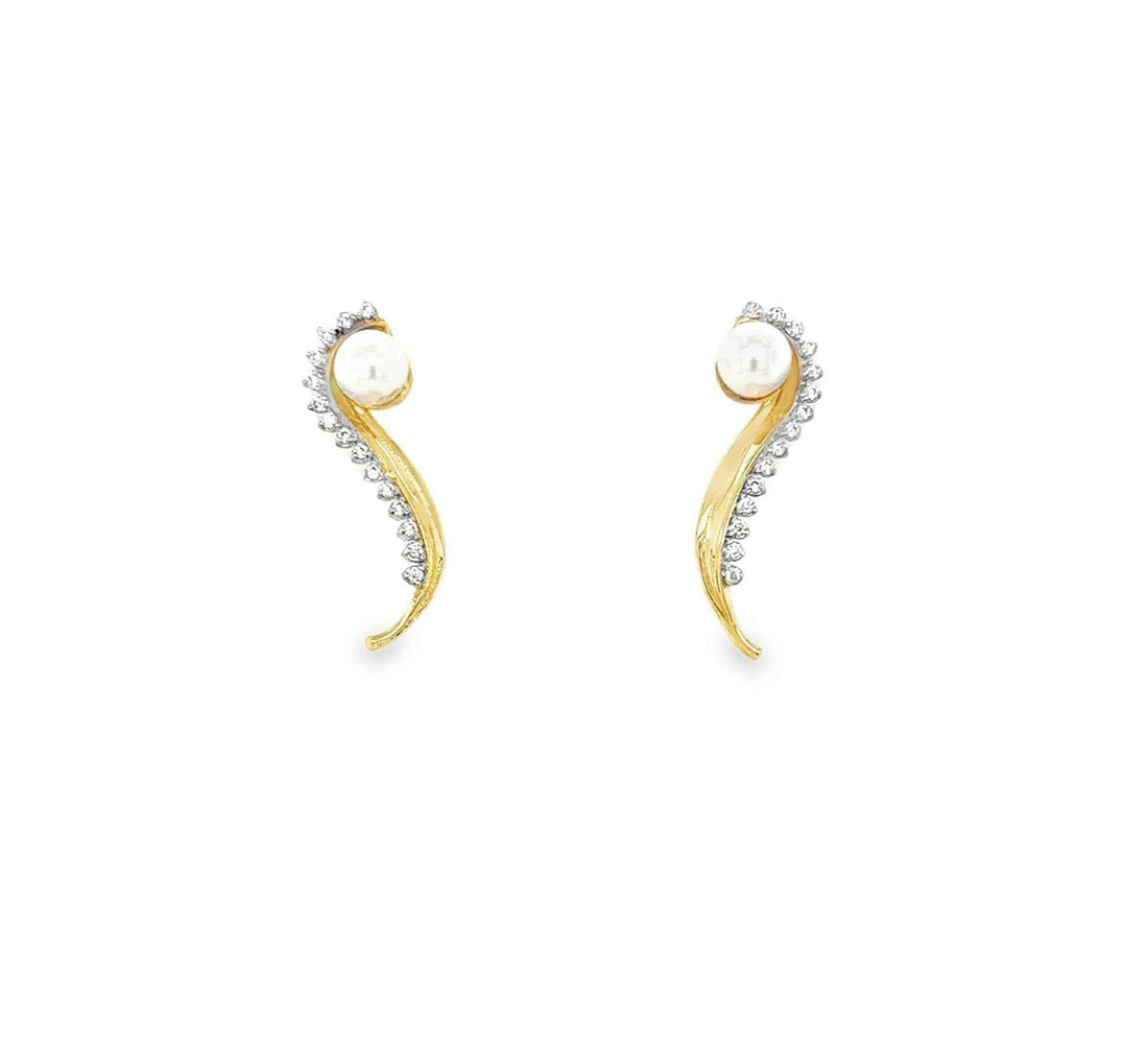 Spiral Pave and Pearl Moissanite Earrings in Vermeil Gold