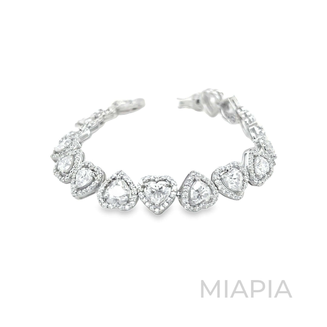 Celebrate love with the Heart Halo Bracelet by Miapia. This stunning design features heart-shaped moissanite...