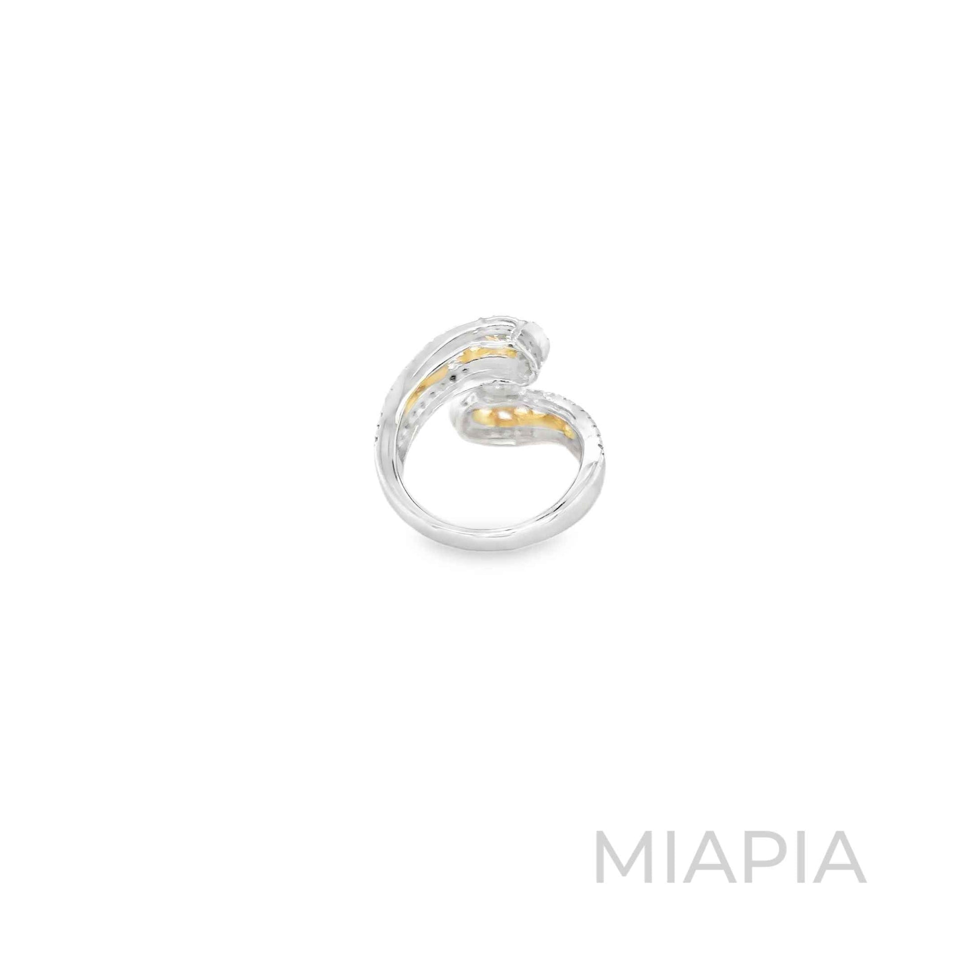 A masterpiece of artistry, the Twist Serenade Ring by Miapia combines elegance and movement. The central moissanite diamond sparkles with unmatched brilliance, while a split band of vermeil gold over sterling silver showcases intricate gold scrollwork and pave-set moissanites. The twist design creates a fluid, modern aesthetic, perfect for marking special moments or elevating your daily style. Part of Miapia’s sustainable demi-fine jewelry collection, this ring ensures luxury with a conscious touch.