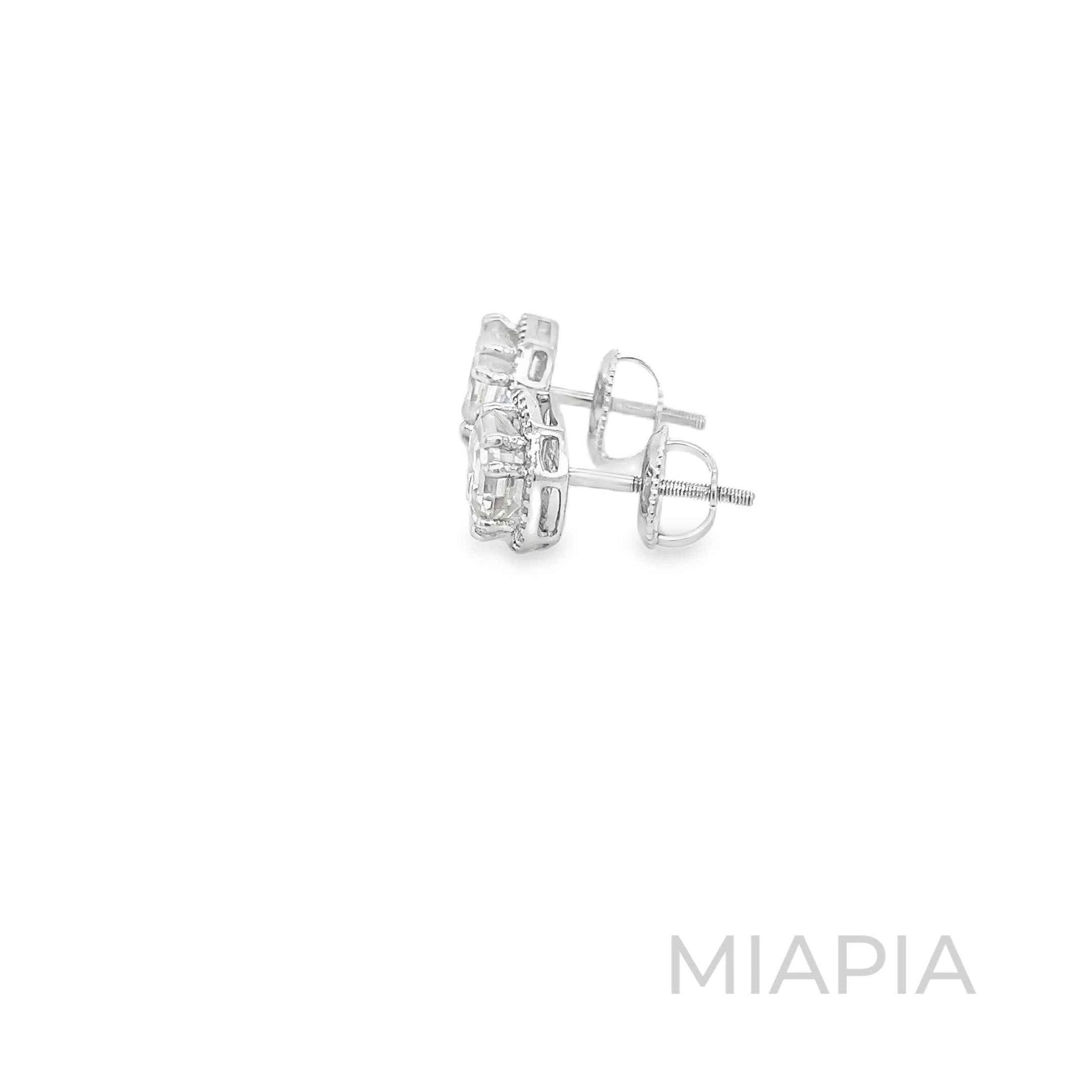 Miapia’s 3-Carat Asscher Cut Moissanite Halo Studs showcase a captivating Asscher-cut moissanite center, encased in a shimmering halo of petite moissanites. Set in rhodium-plated sterling silver, this timeless design adds brilliance and dimension, making it the perfect statement piece for both everyday elegance and evening glamour. A stunning addition to your demi-fine jewellery collection.