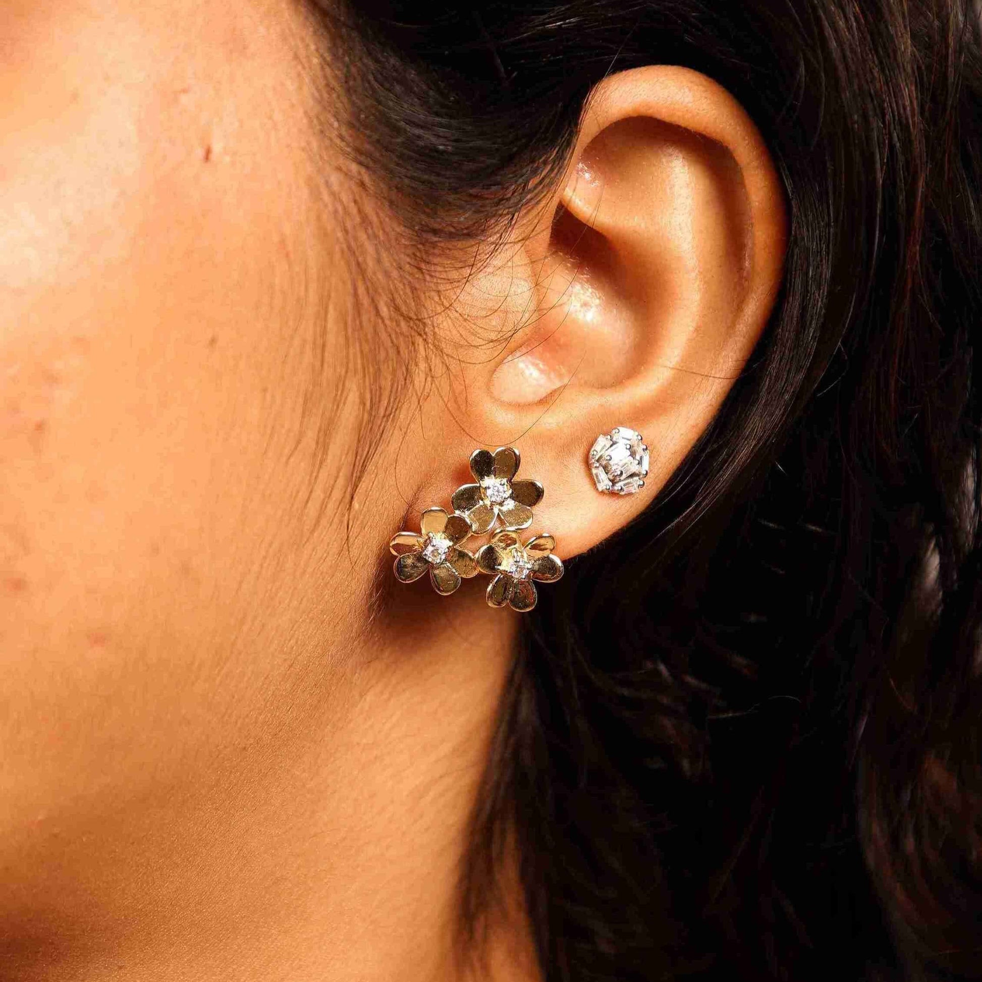 Radiate timeless elegance with Miapia’s Blooming Luxe Studs. Crafted in vermeil gold over sterling silver, these floral-inspired earrings feature a delicate arrangement of petals adorned with brilliant Moissanite diamonds, adding a touch of sparkle to every look. Designed to sit gracefully on the ear, these demi-fine jewellery pieces are perfect for daytime sophistication or evening allure. Ideal for those who appreciate modern design infused with sustainable luxury.