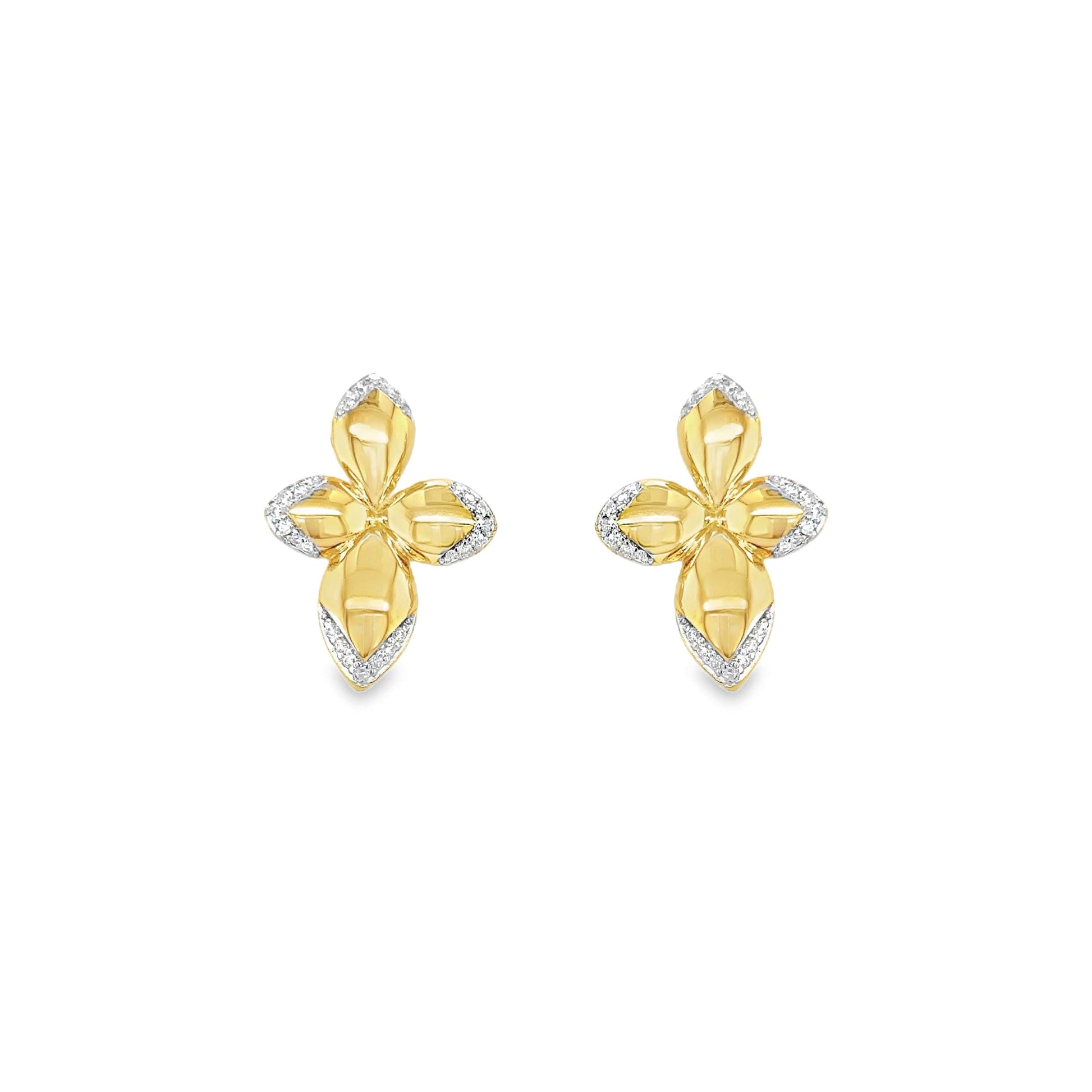 Celebrate the timeless charm of nature with the Blooming Luxe Studs. Crafted in sustainable vermeil gold over sterling silver, these exquisite studs feature a graceful floral motif brought to life with petal-shaped high-polish details. The edges of each petal are adorned with a delicate halo of shimmering moissanites, creating a radiant frame that enhances the beauty of the design.