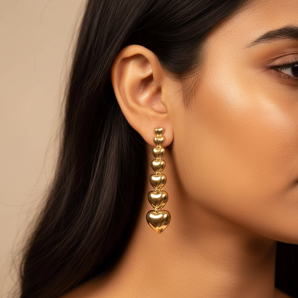 Add a romantic touch to your style with the Cascade Heart Drops – a charming design featuring a playful series of polished vermeil gold hearts. These earrings gracefully flow downward, creating a beautiful cascade effect that adds movement and elegance to any look. Crafted from sustainable sterling silver and finished in rich vermeil gold, each heart catches the light, bringing warmth and sophistication to your ensemble. Perfect for both everyday wear and special occasions, the Cascade Heart Drops are a must-have for those who love jewelry with a touch of whimsy and elegance, embodying Miapia’s commitment to quality and unique design.