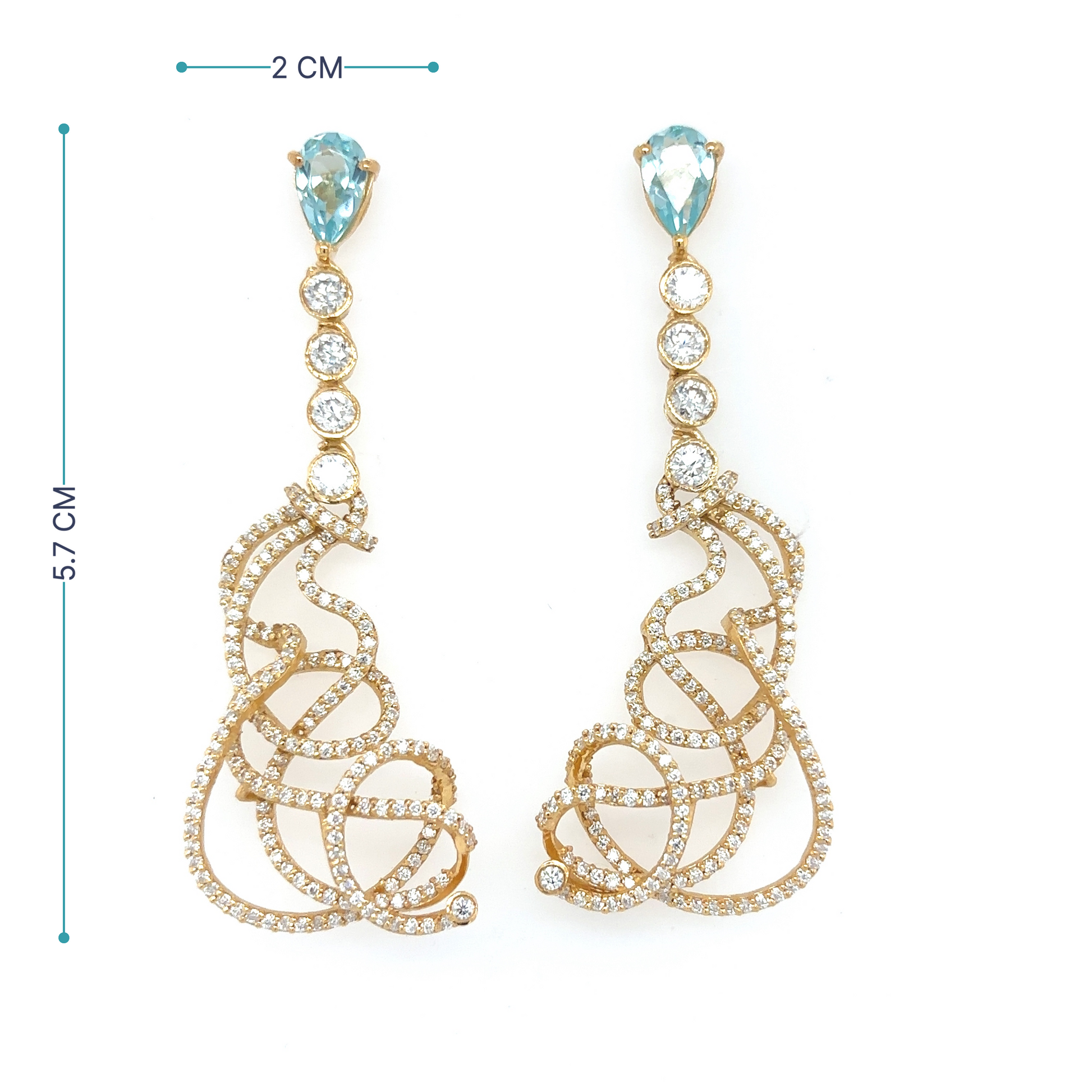 Stardust Moissanite diamonds hand set in 9 Karat Gold or Sterling Silver accompanied by faux aquamarine pears.