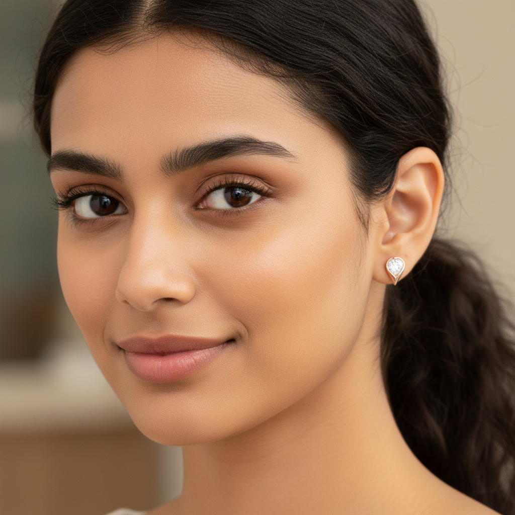 Inspired by the elegance of nature, the Dewdrop Studs feature a delicate teardrop design crafted in rose vermeil. A shimmering moissanite sits gracefully at the heart of each stud, reflecting light like morning dew. The soft curves and minimalistic design make these earrings a timeless addition to your jewellery collection.
