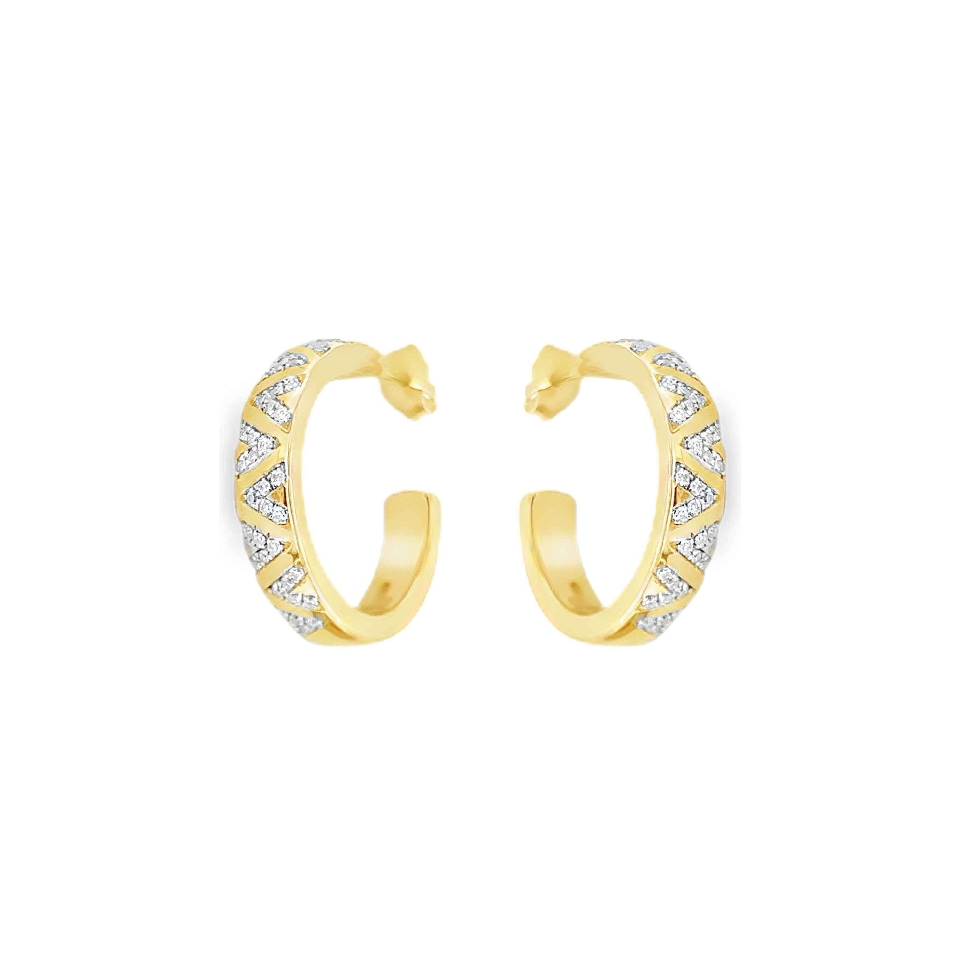 The Diagonal Dazzle Hoops by Miapia bring geometric elegance to life. Featuring a striking diagonal pattern of pavé-set Moissanite diamonds, these demi-fine earrings are crafted in vermeil gold over sterling silver for a luxurious, lasting glow. Their contemporary design makes them the perfect accessory to elevate any outfit, from casual daywear to evening sophistication. With their timeless charm and meticulous craftsmanship, these hoops embody Miapia’s signature sustainable luxury.