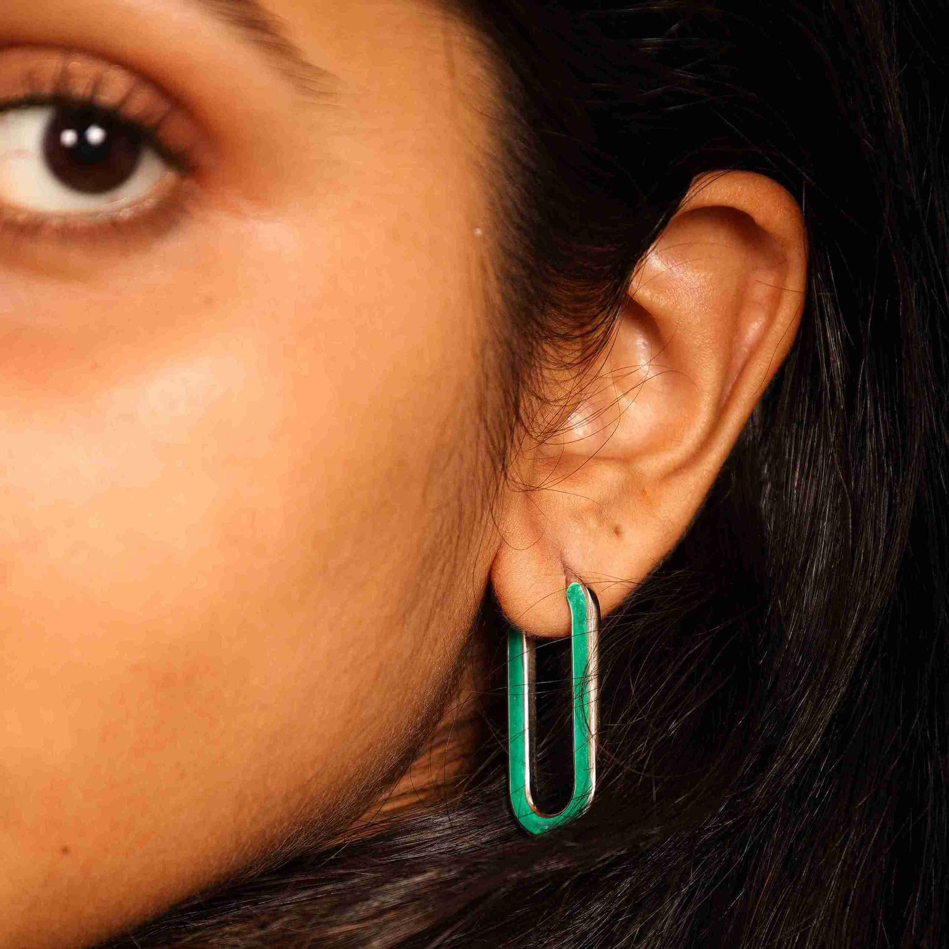 Step into a world of versatility with Miapia’s Dual Aura Hoops. These two-sided earrings feature a seamless blend of polished rhodium-plated sterling silver on one side and vibrant green enamel on the other. Designed for the modern muse, these hoops offer two looks in one—minimal elegance or a bold pop of colour. Whether you’re curating a sophisticated daytime ensemble or a striking evening style, these demi-fine jewellery staples make the perfect partner for your ever-changing mood. Sustainably crafted to complement your dynamic spirit.