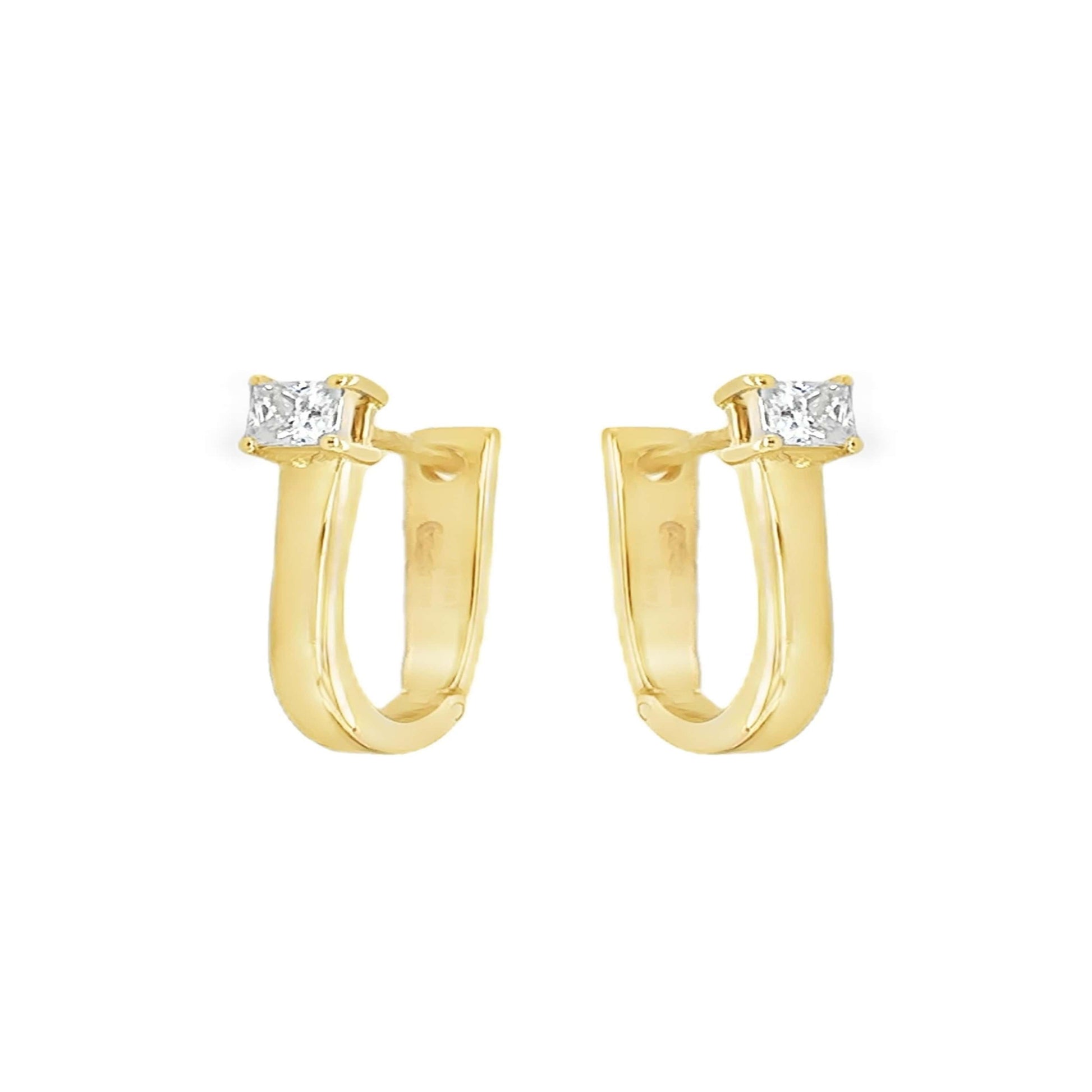 Sleek and refined, the Elegance U-Bar Hoops redefine contemporary sophistication. Featuring a geometric U-bar design, these hoops are meticulously crafted in vermeil gold for a luminous finish. A single, radiant moissanite graces each hoop, adding a touch of sparkle that contrasts beautifully with the bold gold silhouette.