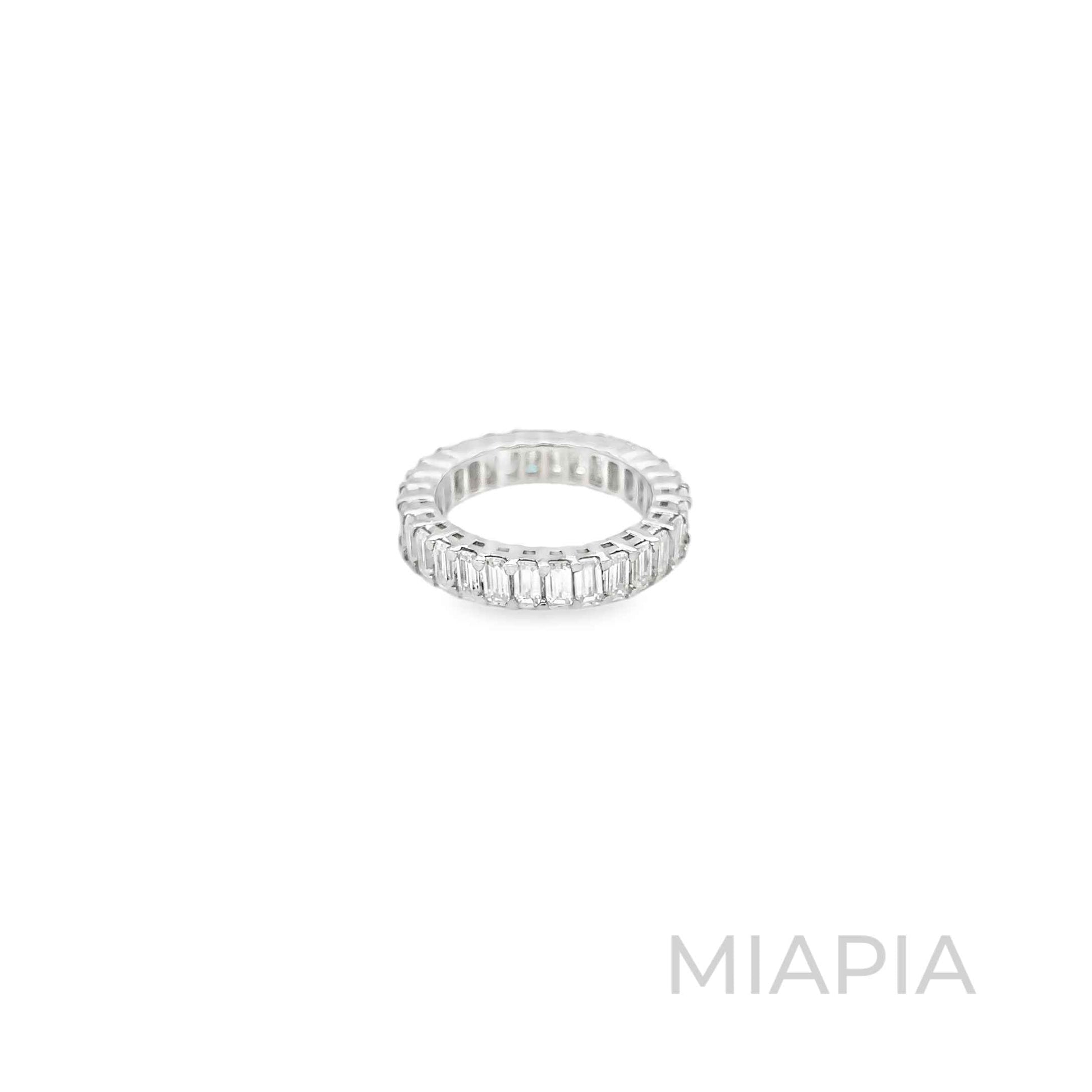 The Emerald Radiance Eternity Ring by Miapia features a continuous row of exquisite emerald-cut moissanites, creating an endless shimmer. Set in rhodium-plated sterling silver, this ring showcases refined elegance and exceptional craftsmanship. Perfect for celebrating life’s milestones or elevating everyday luxury, this timeless piece embodies Miapia’s dedication to demi-fine jewelry excellence.
