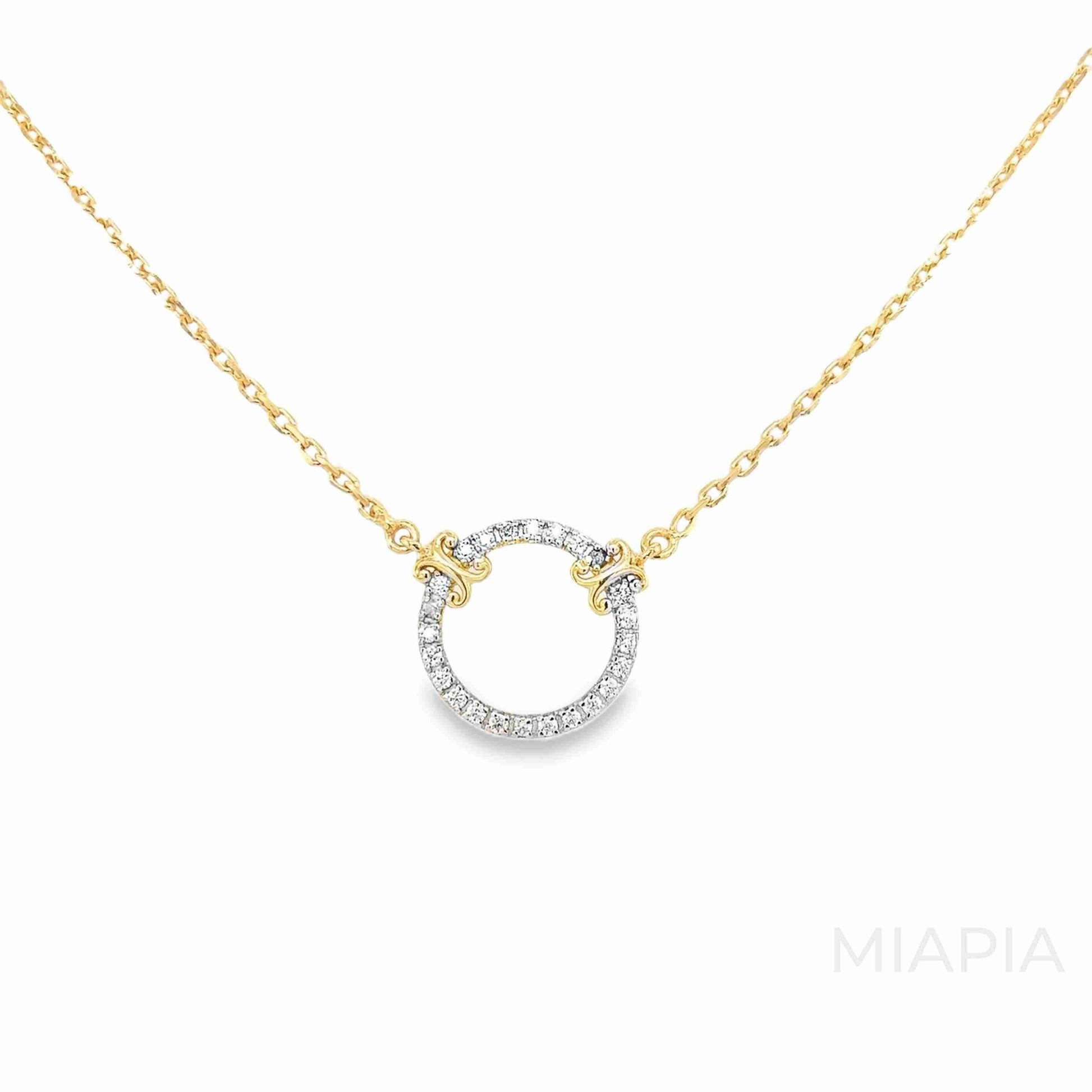 Celebrate timeless elegance with the Eternal Circle Pendant. Crafted in vermeil gold, this classic design features a beautifully encrusted circle of shimmering moissanite diamonds, symbolizing infinity and unity. Suspended on a delicate gold chain, this pendant exudes understated sophistication, making it perfect for both everyday wear and special occasions. A versatile piece that complements any outfit, it’s a testament to Miapia’s dedication to sustainable luxury and timeless style.