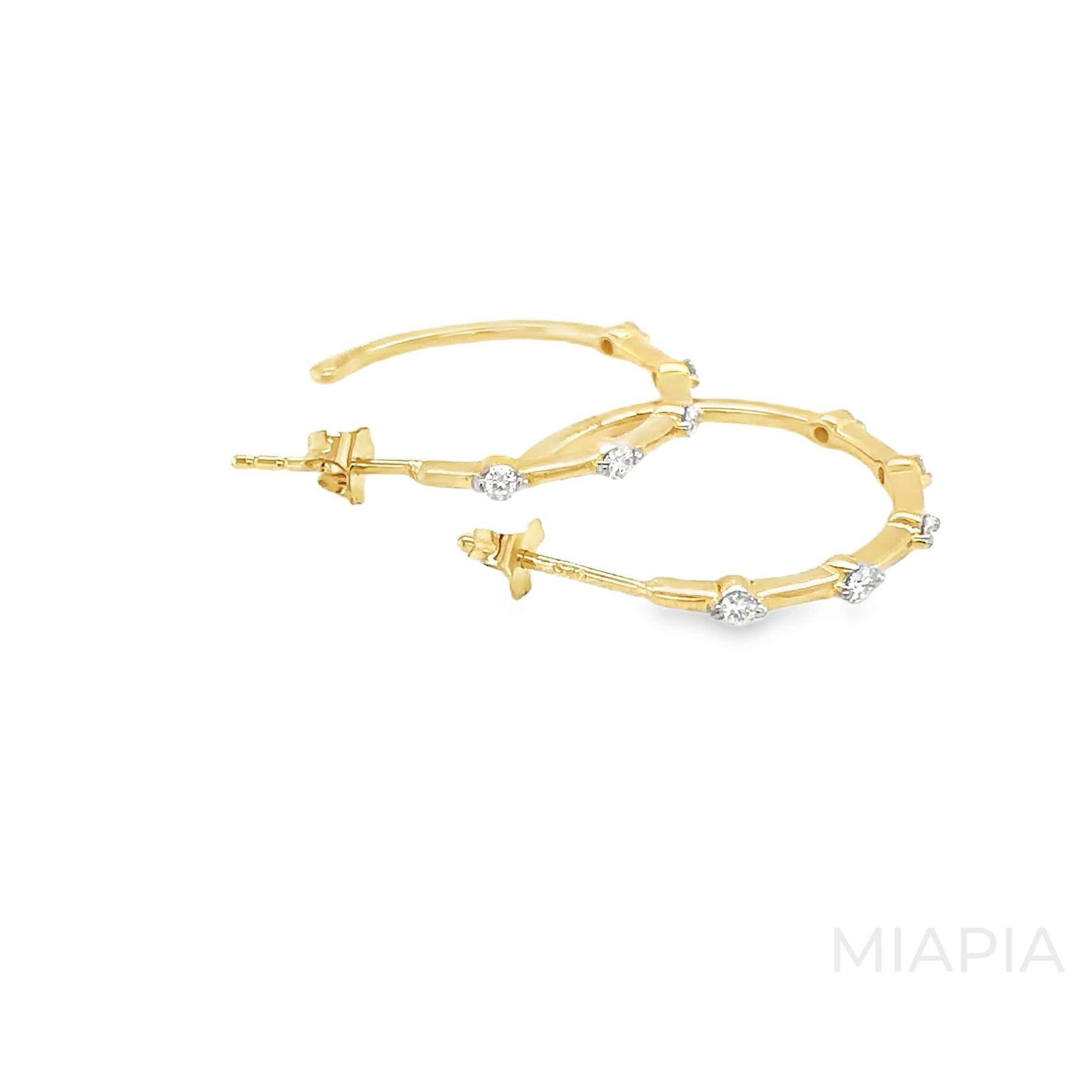 Experience the subtle luxury of Miapia’s Ethereal Orbit Hoops. These exquisite earrings are crafted from vermeil gold and feature perfectly spaced moissanite stones that gracefully orbit the hoops. The minimalistic yet captivating design adds a touch of timeless elegance and contemporary shine to any outfit.
