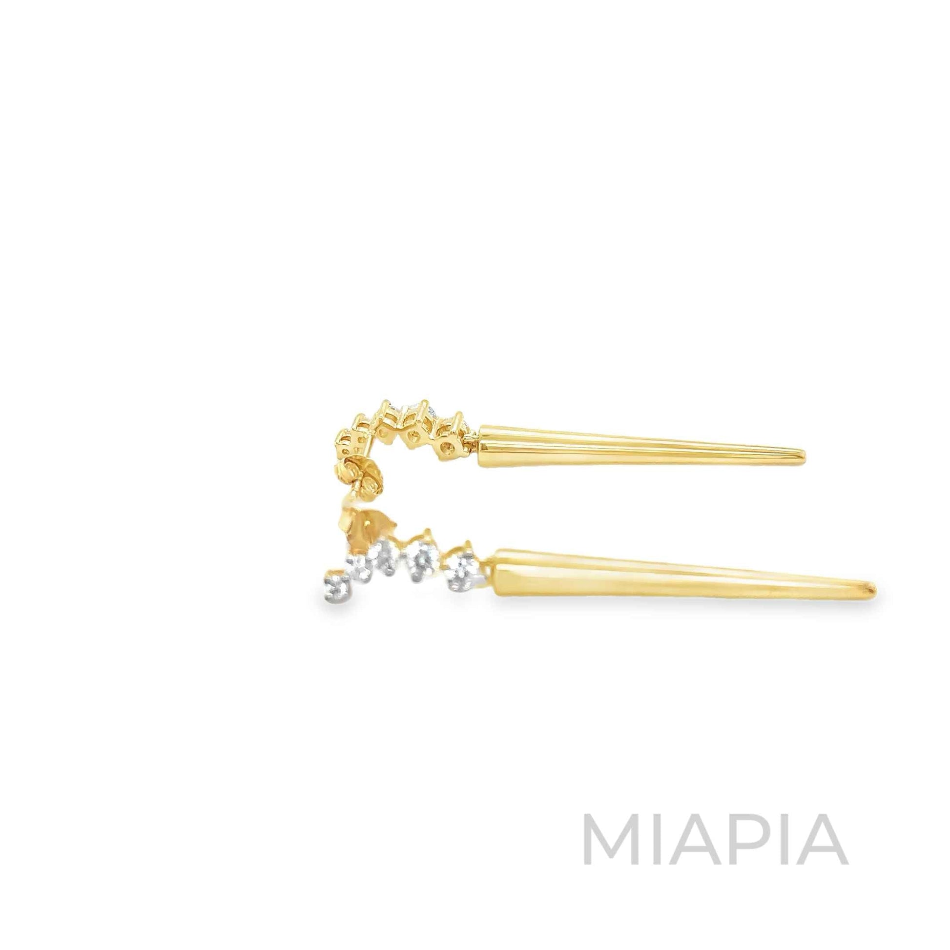 Elevate your look with Miapia’s Ethereal Vine Drop Earrings, a graceful fusion of sleek minimalism and sparkling allure. These earrings feature a cascading trail of moissanite diamonds ascending like delicate vines, paired with slender, polished vermeil gold bars that add contemporary elegance. Perfect for making a subtle yet striking statement at evening soirees or upscale gatherings, these earrings exude the essence of luxury and refined taste. As part of Miapia’s demi-fine jewelry collection, they promise timeless charm and sustainability.