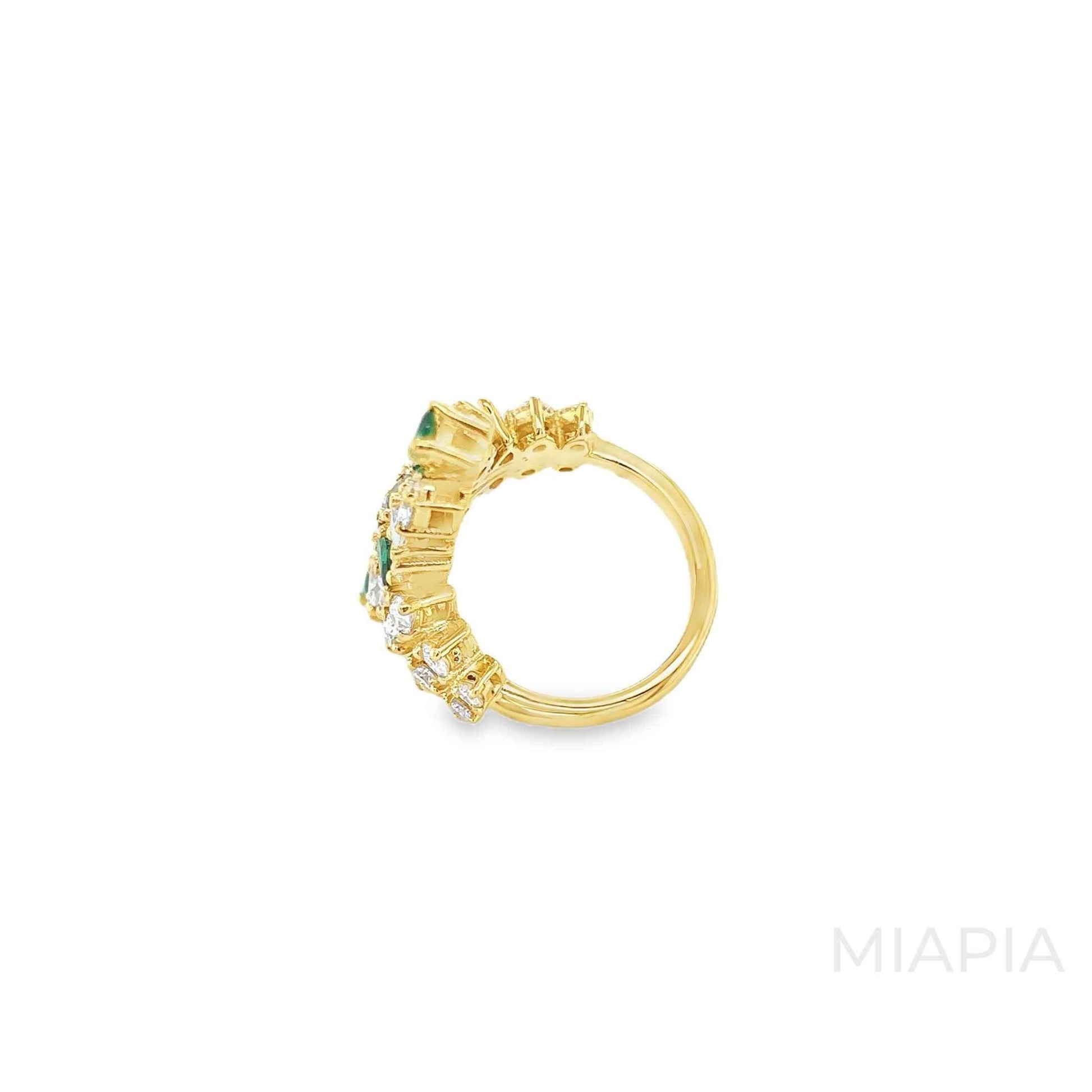 The Flourishing Vine Ring by Miapia captures the organic elegance of nature with its intricate design. This stunning piece showcases brilliant moissanite diamonds and vibrant green gemstones woven together in a vine-inspired motif, all set in vermeil gold over sterling silver. Perfect for special occasions or adding a bold touch to your everyday look, this ring celebrates Miapia’s dedication to luxurious and sustainable demi-fine jewellery.