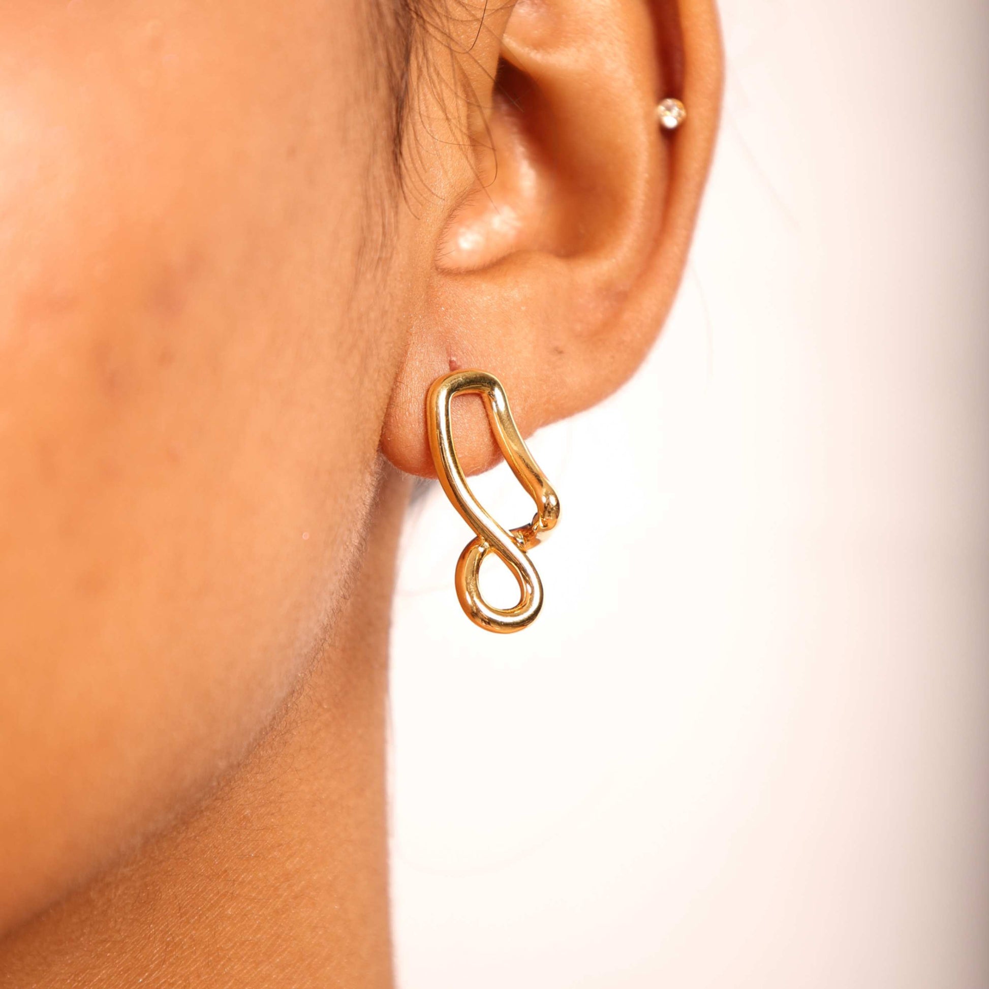 Embrace a modern, artistic aesthetic with Miapia’s Fluid Loop Earrings. These earrings, crafted in vermeil gold over sterling silver, feature a dynamic open-loop design, exuding contemporary charm and effortless sophistication. Lightweight and versatile, they are perfect for day-to-night transitions or adding a touch of intrigue to minimalistic outfits. Celebrate the art of sustainable luxury with Miapia’s exquisite demi-fine jewellery collection.