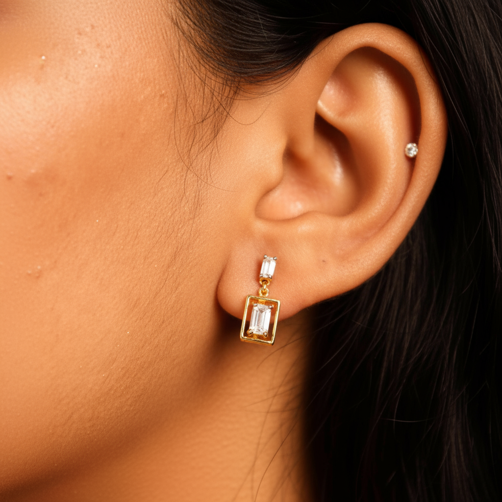 Perfect for evening events or as a statement piece to elevate any ensemble, the Frame of Light Danglers exude effortless charm.