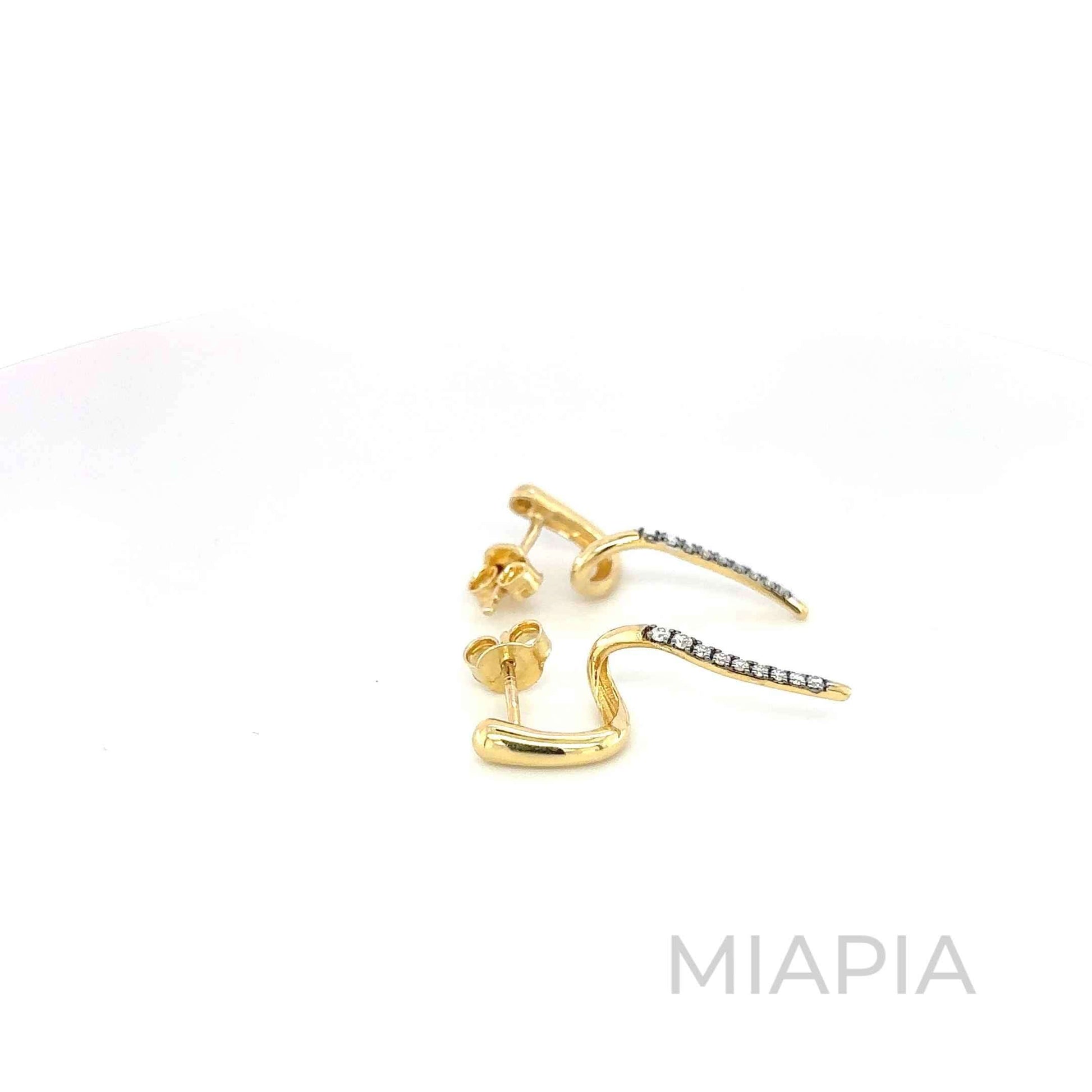 The Glimmer Arc Earrings by Miapia redefine elegance with their fluid design and sparkling details. Crafted from vermeil gold over sterling silver, these earrings feature a graceful arc that transitions into a delicate line of moissanite diamonds, adding a shimmering allure to the piece. The contemporary silhouette makes them a versatile accessory, perfect for elevating everyday looks or adding a modern edge to evening ensembles. A true testament to Miapia’s artistry in demi-fine jewelry, these earrings balance simplicity and luxury effortlessly.