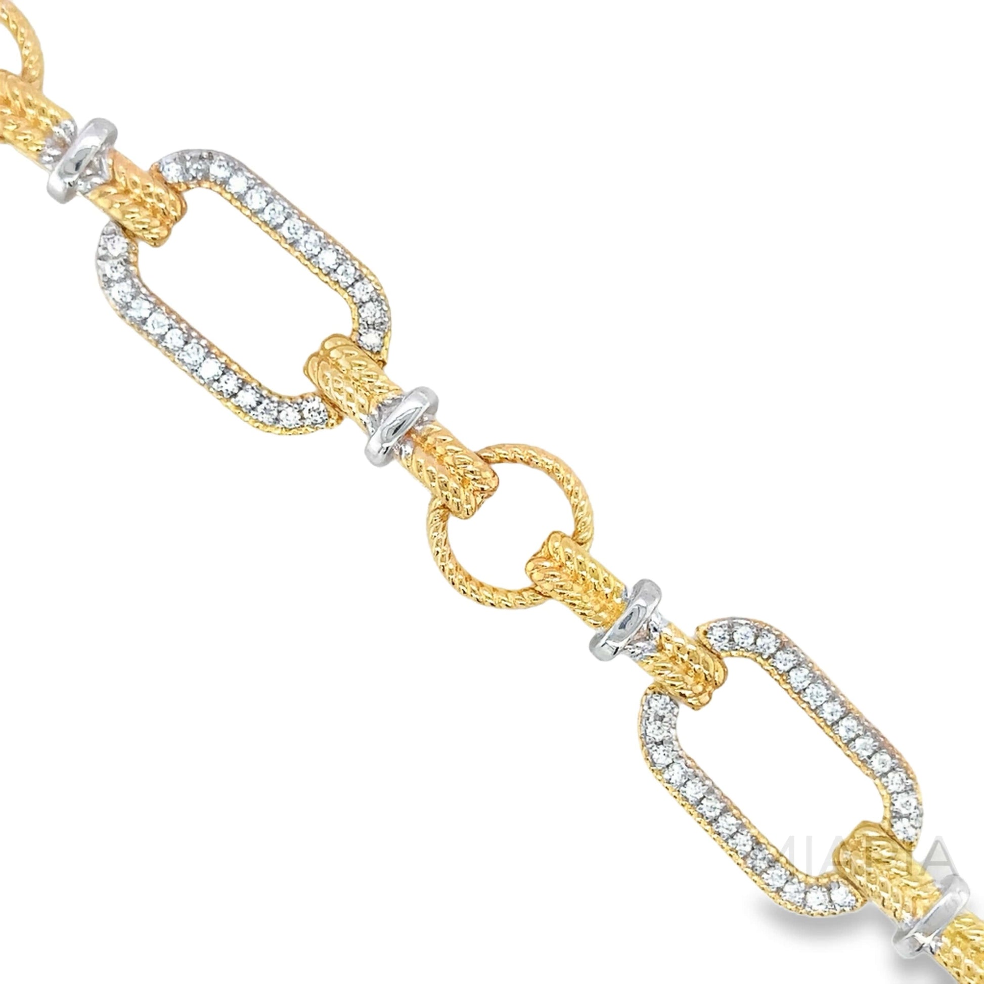 Bold and luxurious, the Grande Link Bracelet by Miapia redefines statement jewelry. Featuring oversized textured links in vermeil gold over sterling silver, each element is intricately detailed with pavé-set moissanite diamonds, creating a dazzling interplay of light and texture. Perfectly balancing modern edge with timeless elegance, this bracelet is a standout piece for special occasions or elevating everyday looks. Ethically crafted with sustainable materials, this demi-fine jewellery piece captures Miapia’s commitment to luxury and conscious design.
