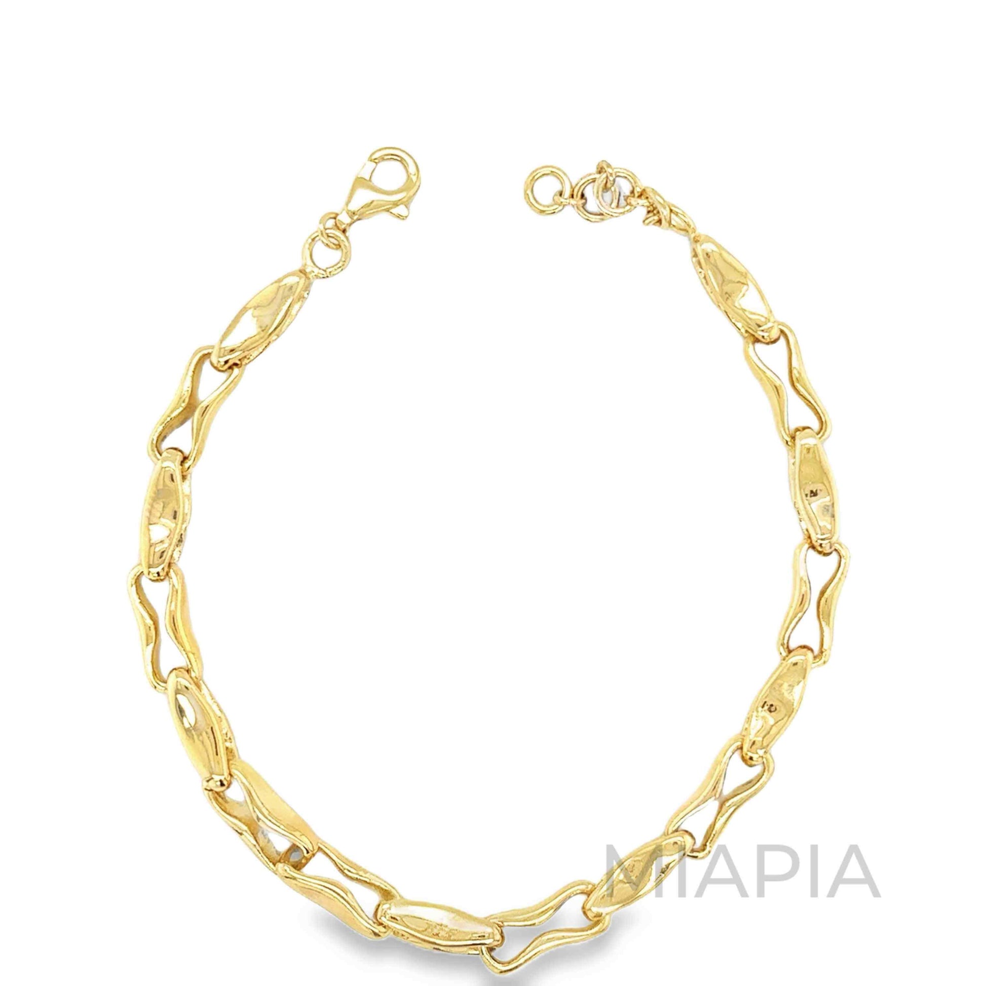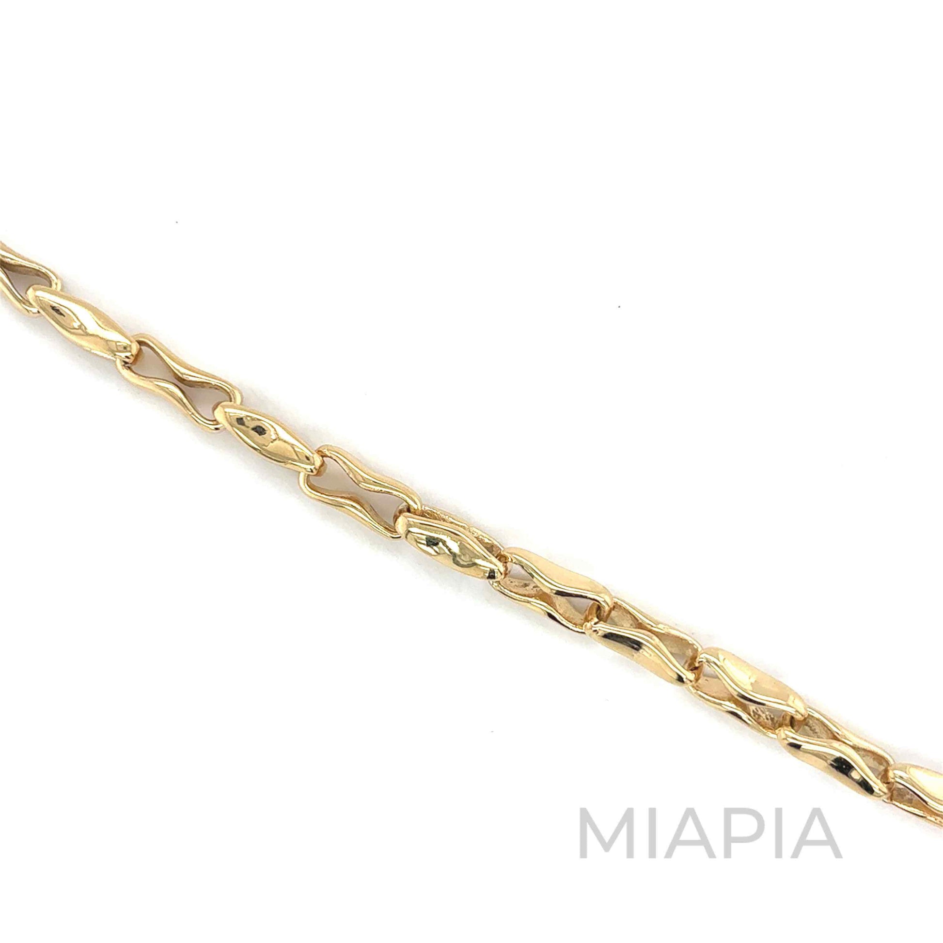 The Liquid Gold Chain Bracelet by Miapia exudes fluid elegance with its sculptural, interwoven links in vermeil gold over sterling silver. Inspired by the natural flow of molten gold, this piece combines artistry and craftsmanship to create a modern yet timeless design. Perfect for everyday wear or special occasions, this lightweight bracelet elevates any outfit with understated sophistication. A stunning example of Miapia’s commitment to sustainable demi-fine jewelry, it’s a must-have for the contemporary jewelry enthusiast.