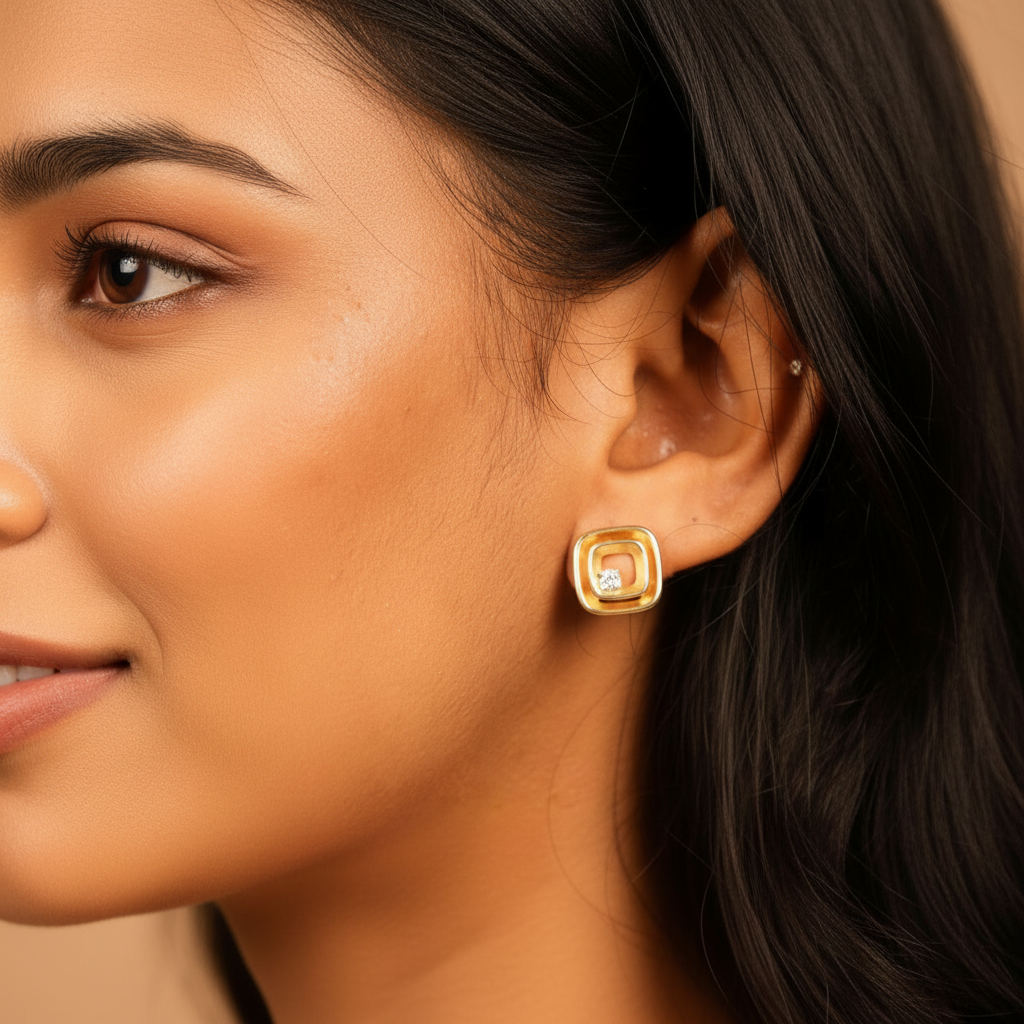 Sleek and artistic, the Modern Frame Studs redefine minimal elegance. Crafted in vermeil gold, these earrings showcase a squared, open-frame design, enclosing a sparkling moissanite at the center. The geometric silhouette exudes contemporary sophistication, making them the perfect accessory for modern style enthusiasts.