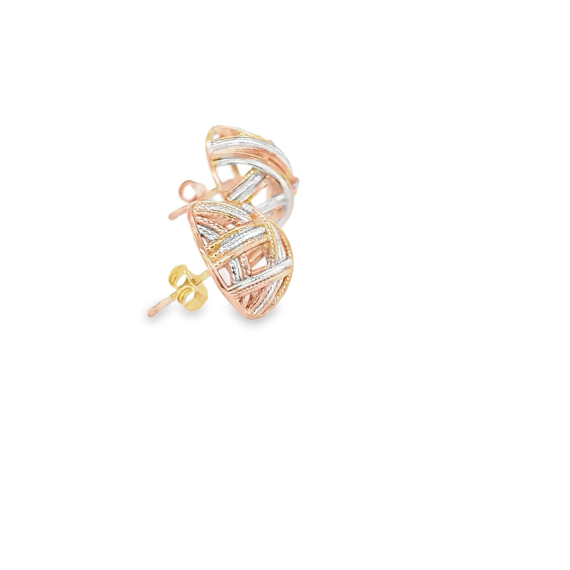 Embrace the artistry of intricate design with the Mosaic Weave Studs – a blend of elegance and modern craftsmanship. These circular studs feature a stunning interwoven pattern of vermeil gold, pink gold, and rhodium-plated sterling silver, creating a rich tapestry of textures and tones. The openwork design allows light to dance through, adding depth and dimension that brings a captivating visual appeal. Perfect for those who appreciate unique and refined jewellery, the Mosaic Weave Studs are versatile enough to enhance both casual and formal looks. Crafted with sustainable materials and high-quality finishes, these earrings are a testament to Miapia’s commitment to timeless elegance and contemporary style.