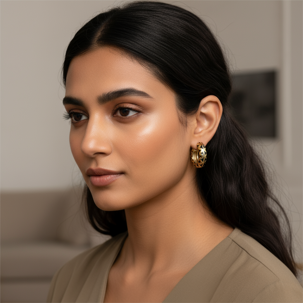 Add a vibrant touch to your look with Miapia’s Mosaic Dream Hoops. Featuring intricate geometric patterns in vivid green enamel, these earrings are crafted in vermeil gold over sterling silver. The unique design radiates artistry and sophistication, making them a standout piece in any demi-fine jewellery collection. Perfect for those who love bold yet elegant accessories, these hoops bring a fresh perspective to your everyday and special occasion styles.