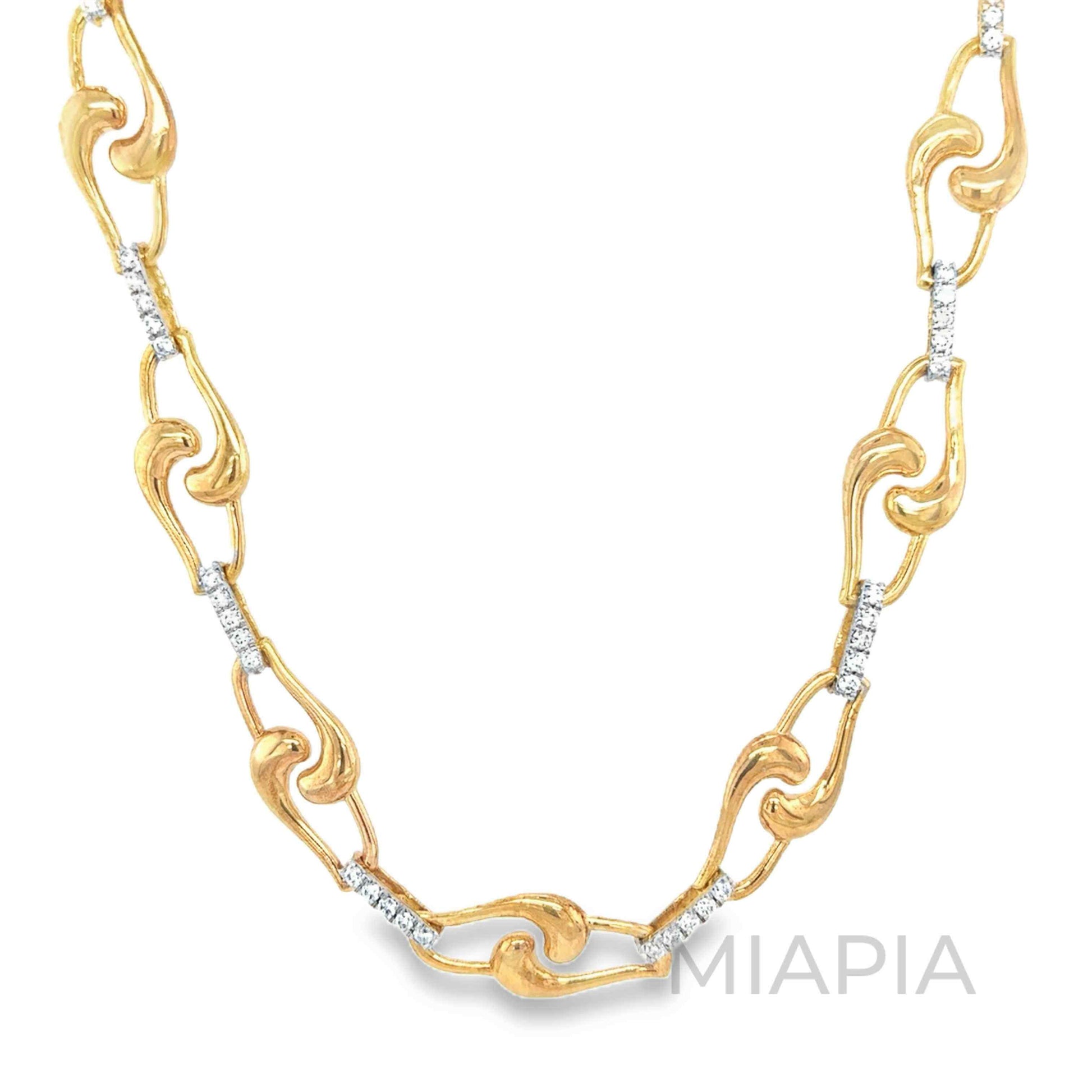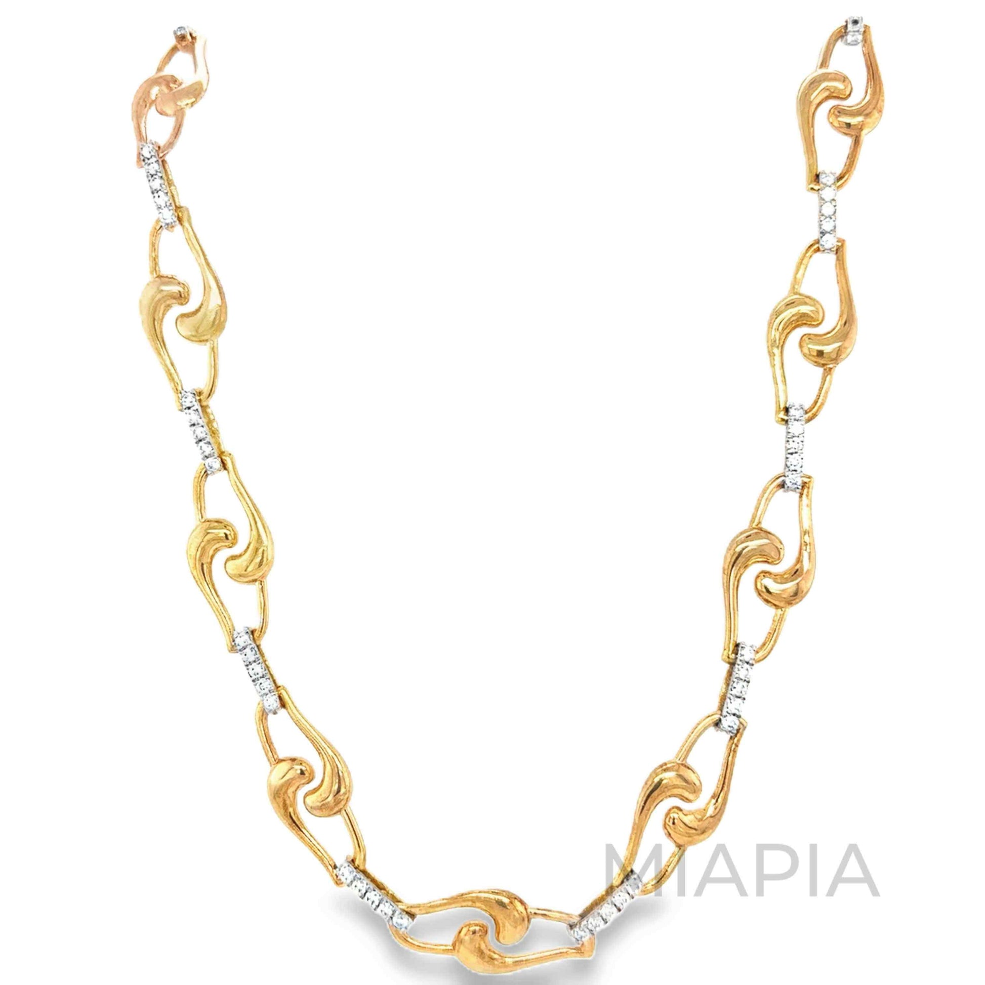 Miapia’s Twisted Pave Link Necklace showcases a captivating blend of artistry and precision. Elegant twisted links in vermeil gold are connected by dazzling moissanite pave diamond bars, creating a luxurious design that balances bold structure with timeless sophistication. A statement piece for any refined jewelry collection.