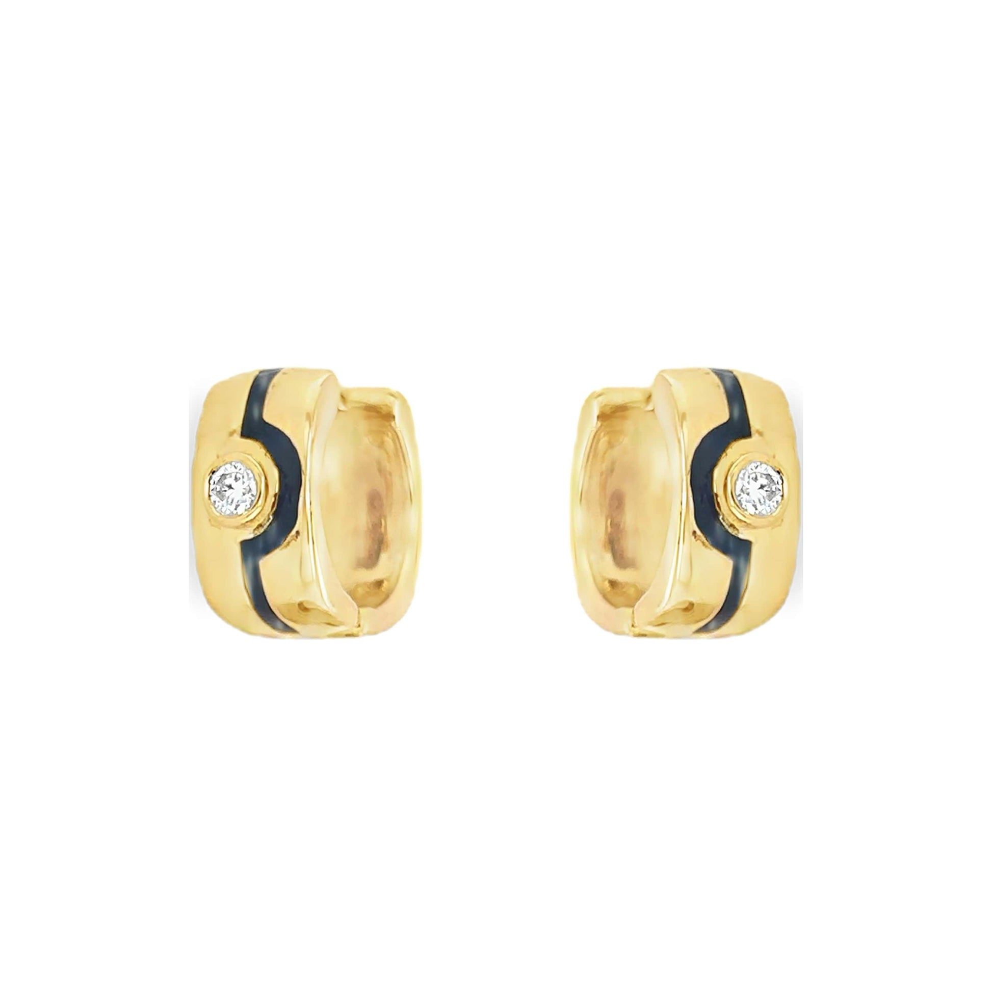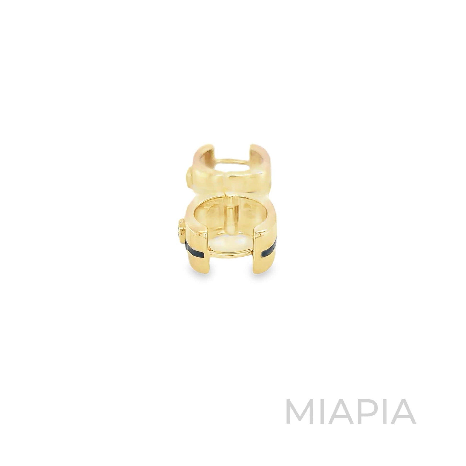 The Noir Accent Hoops by Miapia redefine bold elegance with their striking design. Featuring a sleek black enamel inlay complemented by a brilliant Moissanite diamond centerpiece, these hoops exude modern sophistication. Crafted from vermeil gold over sterling silver, they blend durability with luxury, making them perfect for both casual ensembles and statement-making evening wear. These earrings highlight Miapia’s artistry in creating sustainable demi-fine jewelry that elevates your everyday style.