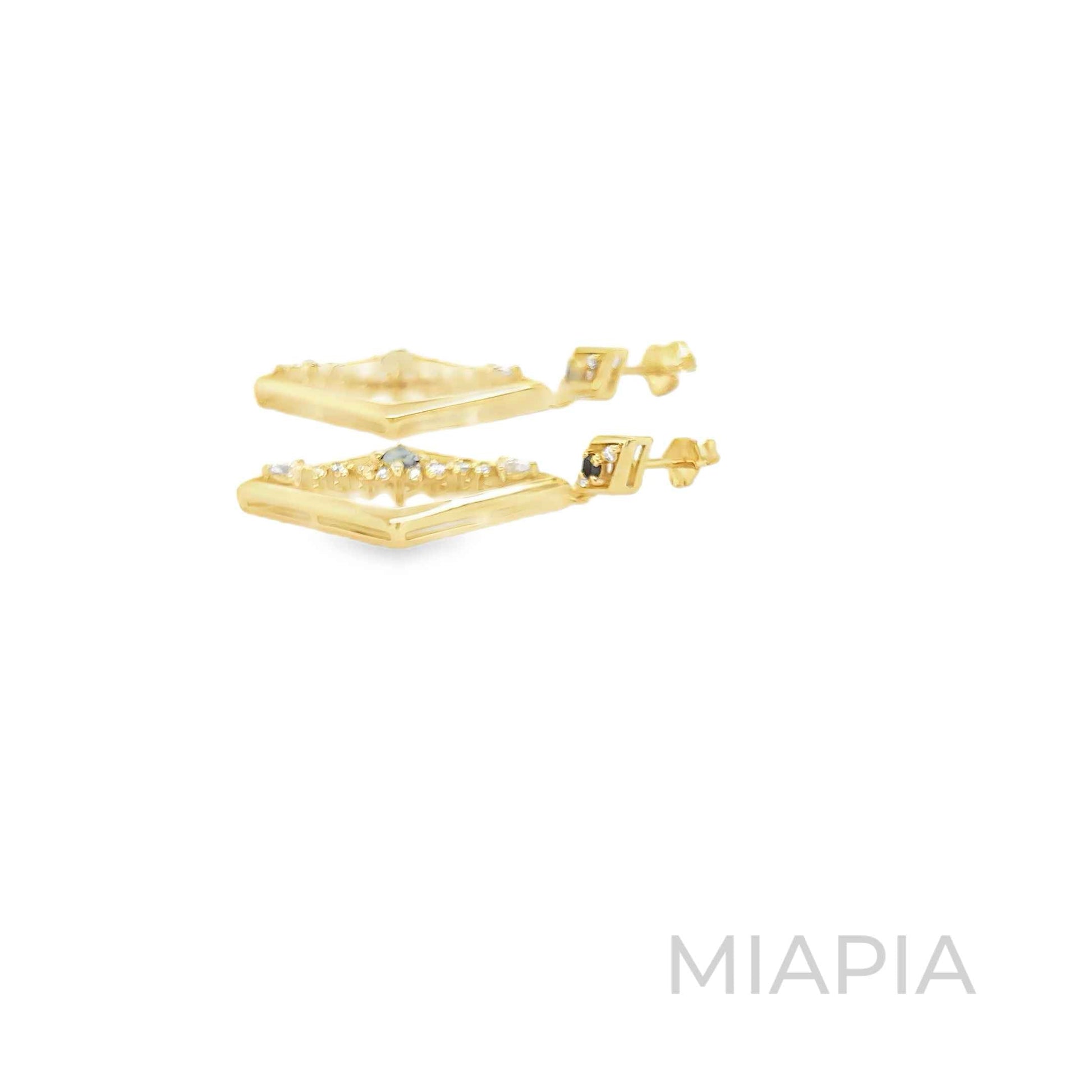 The Noir Vision Drop Earrings by Miapia are a dramatic fusion of geometric sophistication and timeless elegance. These striking earrings, crafted in vermeil gold over sterling silver, feature a bold diamond-shaped frame adorned with radiant moissanite diamonds and a captivating black centerpiece. The intricate detailing and modern aesthetic make these demi-fine earrings perfect for evening events or a statement addition to your day-to-night wardrobe. Celebrate your bold side with the impeccable craftsmanship and sustainable luxury that Miapia is known for.