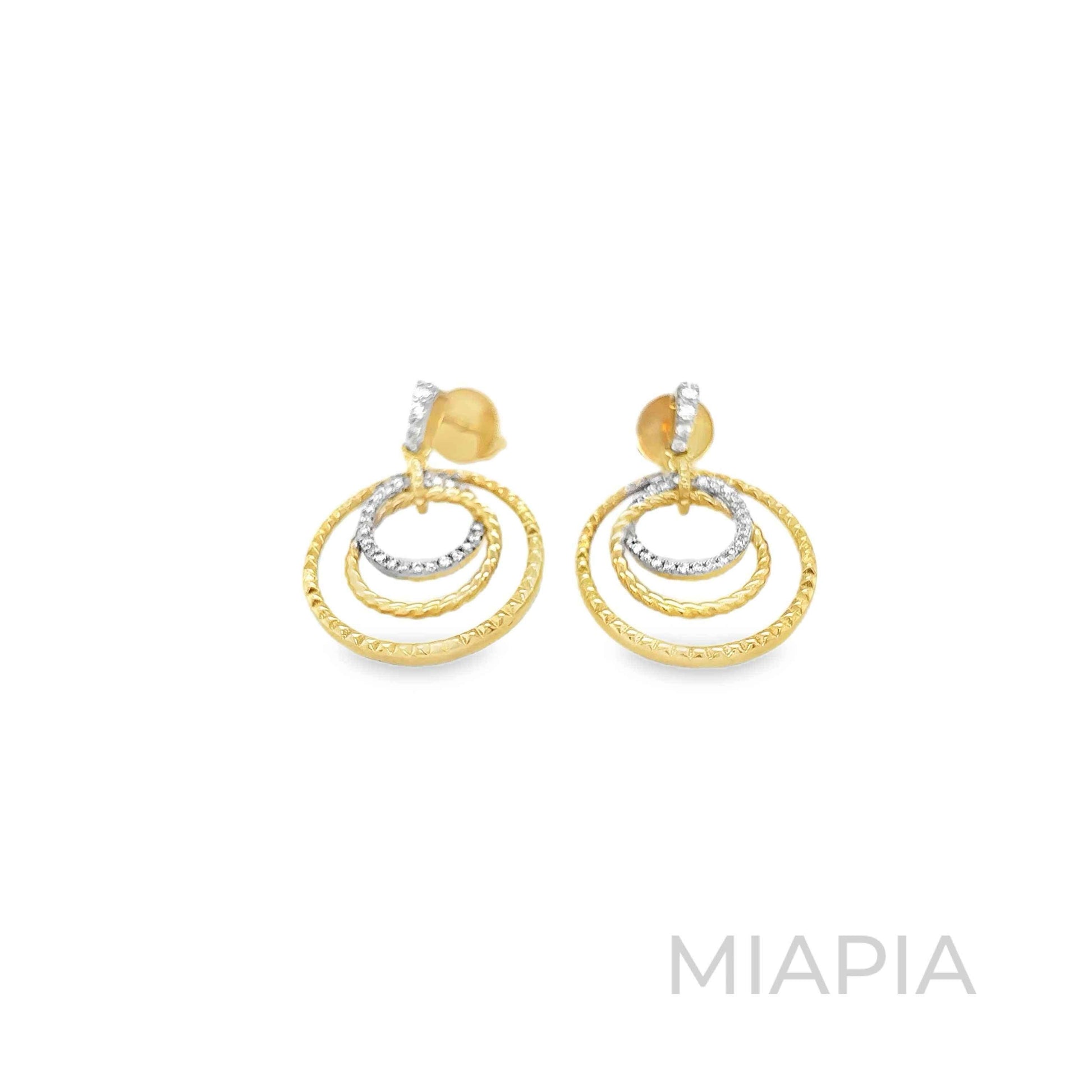 The Orbit Harmony Drop Earrings by Miapia are a celebration of balance and elegance. Featuring interlocking circles of vermeil gold and shimmering pavé moissanites, these earrings are an intricate play of texture and movement. Suspended from a delicate moissanite-adorned bar, their dynamic design adds a touch of sophistication to any outfit. Perfect for special occasions or enhancing everyday looks, these earrings embody Miapia’s commitment to sustainable luxury and timeless style.