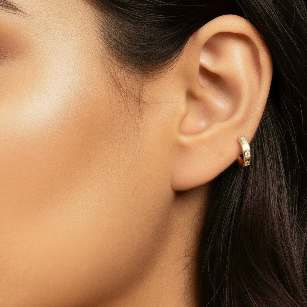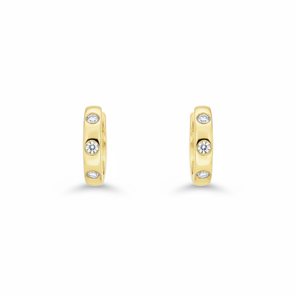 Elevate your everyday style with Miapia’s Orbit Stone Huggies. Crafted from vermeil gold over sterling silver, these petite huggies feature a sleek band adorned with delicately set Moissanite diamonds for just the right hint of sparkle. Perfect for layering or wearing solo, these earrings bring effortless sophistication to any look. A versatile addition to your demi-fine jewelry collection, the Orbit Stone Huggies are ideal for workdays, weekend outings, or special occasions.