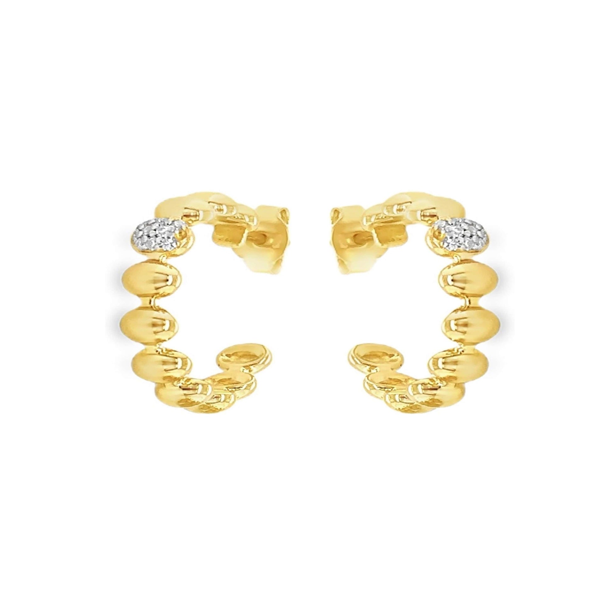 Turn heads with the captivating design of Miapia’s Orbital Moissanite Hoops. Crafted with a series of vermeil gold beads encircling the hoop, these earrings are punctuated by white moissanite accents, adding a touch of sparkle and luxury to the bold, playful shape. The combination of sleek gold and luminous moissanites creates an eye-catching, modern aesthetic that complements any outfit.