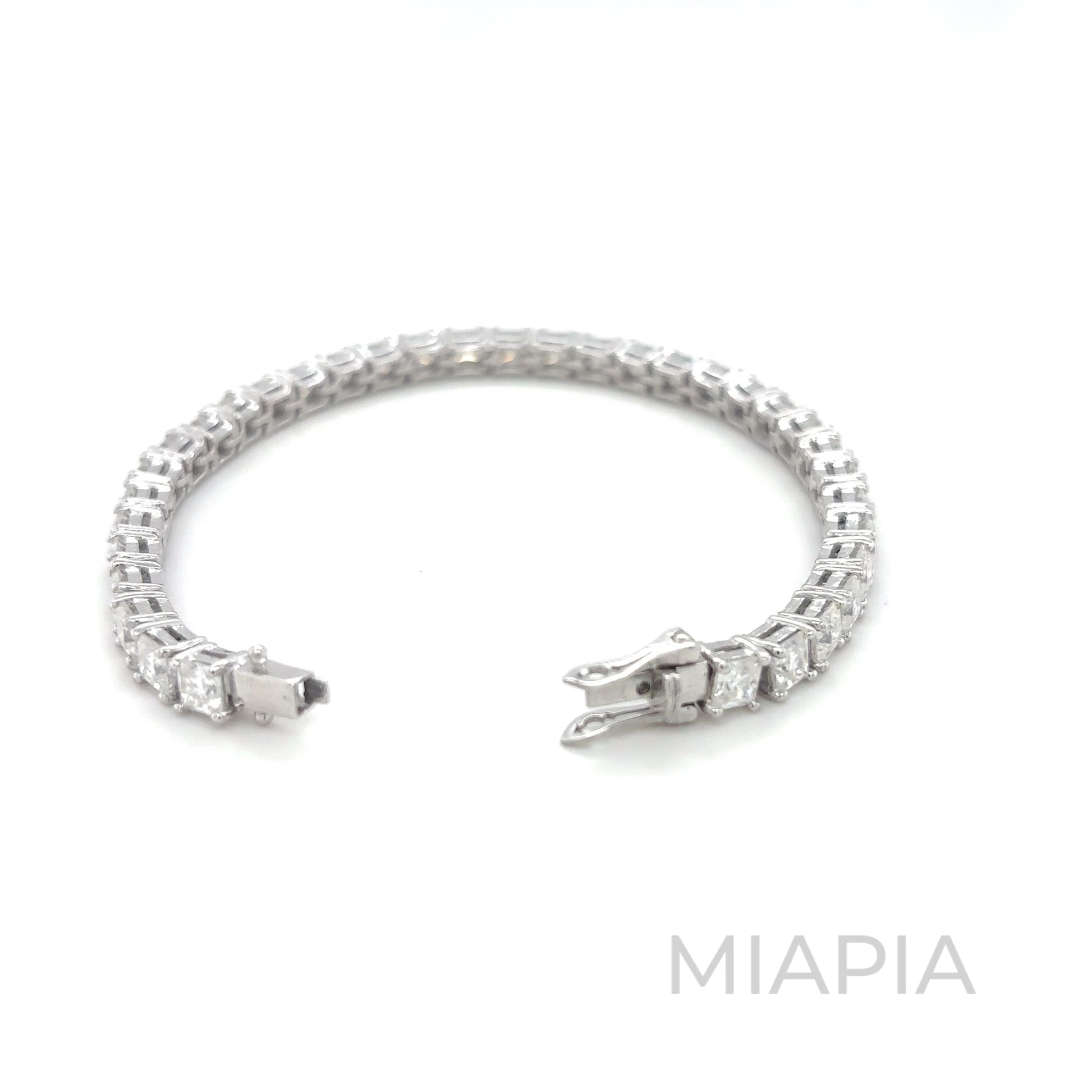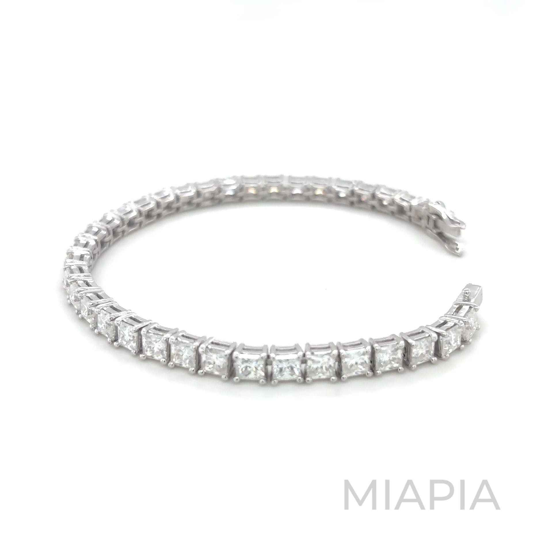 The Radiance Princess Cut Tennis Bracelet by Miapia is a stunning showcase of elegance. Featuring meticulously set princess-cut moissanites along a rhodium-plated sterling silver band, this bracelet exudes timeless brilliance. Perfectly embodying Miapia’s sustainable craftsmanship and luxurious design, it’s an exquisite addition to any jewelry collection.