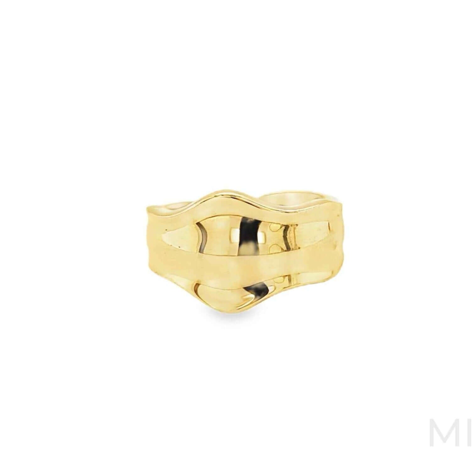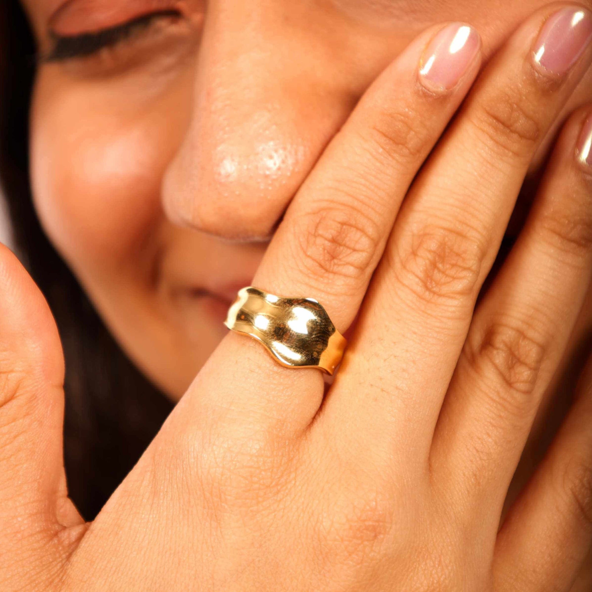 The Ripple Harmony Band by Miapia is a captivating fusion of fluidity and modernity, embodying the essence of demi-fine jewelry. Crafted in vermeil gold over sterling silver, its undulating design gracefully mimics the rhythm of rippling waves. A chic slit at the center adds an avant-garde touch, creating a lightweight, airy structure that is as elegant as it is versatile. This ring is perfect for both casual and formal ensembles, offering a contemporary statement piece for the modern jewelry lover.
