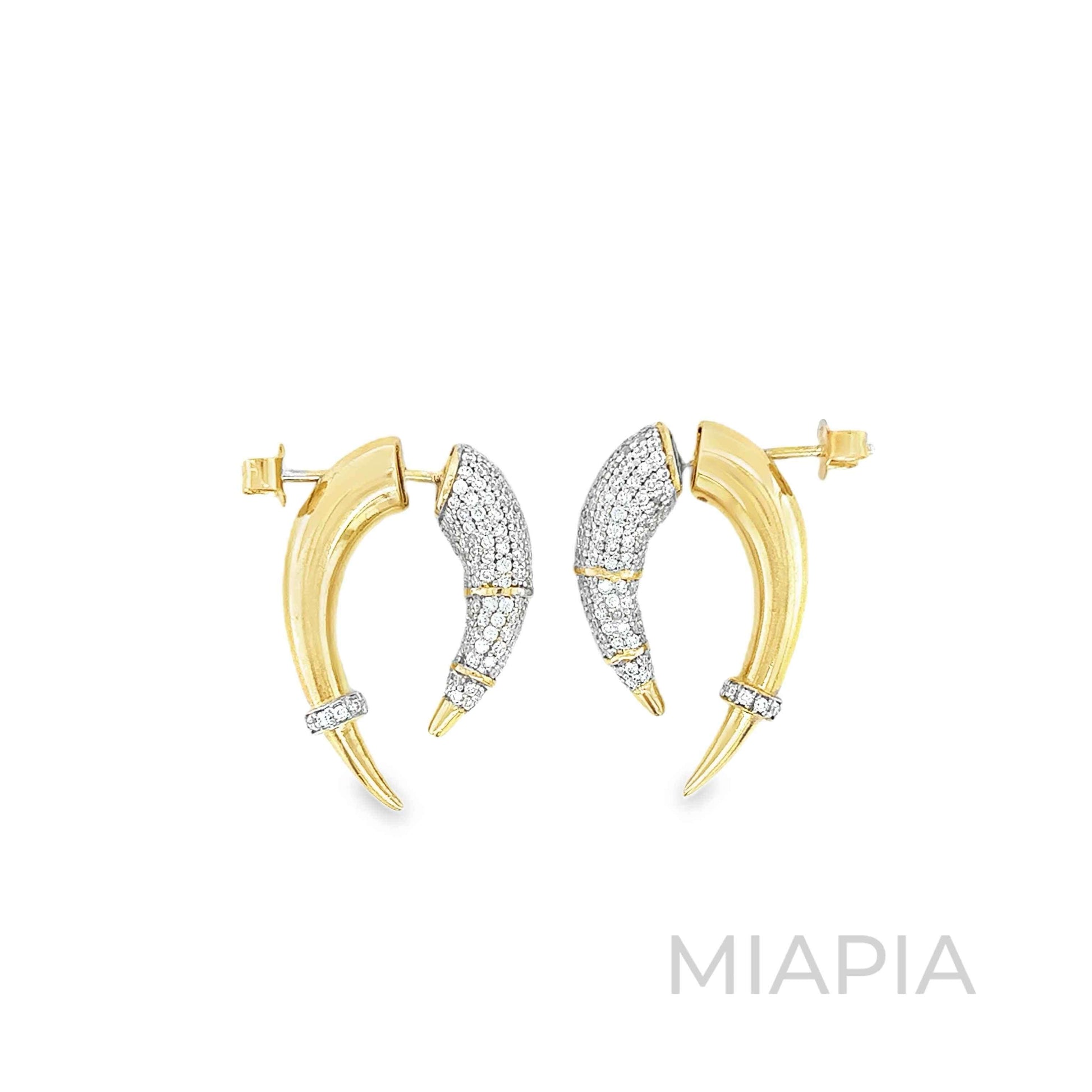 Miapia’s Talon Double-Sided Pave Hoops redefine elegance with a unique front-and-back design. The claw-inspired silhouette showcases shimmering pave-set moissanite diamonds on the front, while the sleek gold finish at the back adds a bold contrast. Crafted in vermeil gold over sterling silver, these dynamic hoops create a statement from every angle.
