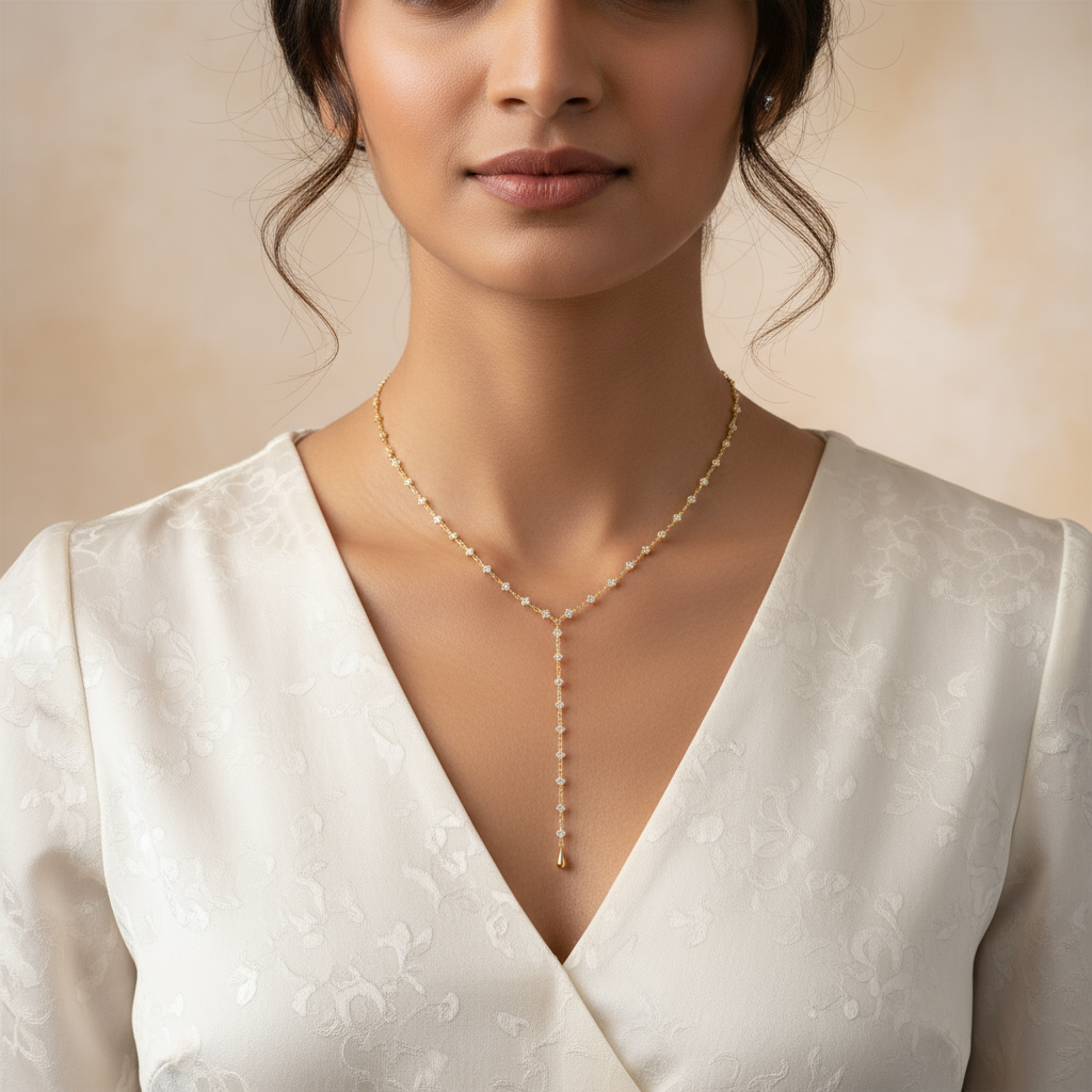 Illuminate your neckline with Miapia’s Twilight Drop Necklace, a graceful piece that embodies understated luxury. Designed in vermeil gold over sterling silver, this necklace features a delicate Y-shaped silhouette adorned with a sequence of shimmering moissanite diamonds. Each diamond is meticulously placed along a slender chain, cascading into a stunning drop that accentuates your décolletage. Ideal for special occasions or adding a touch of elegance to everyday wear, this demi-fine treasure is a testament to Miapia’s commitment to timeless design and exceptional craftsmanship.