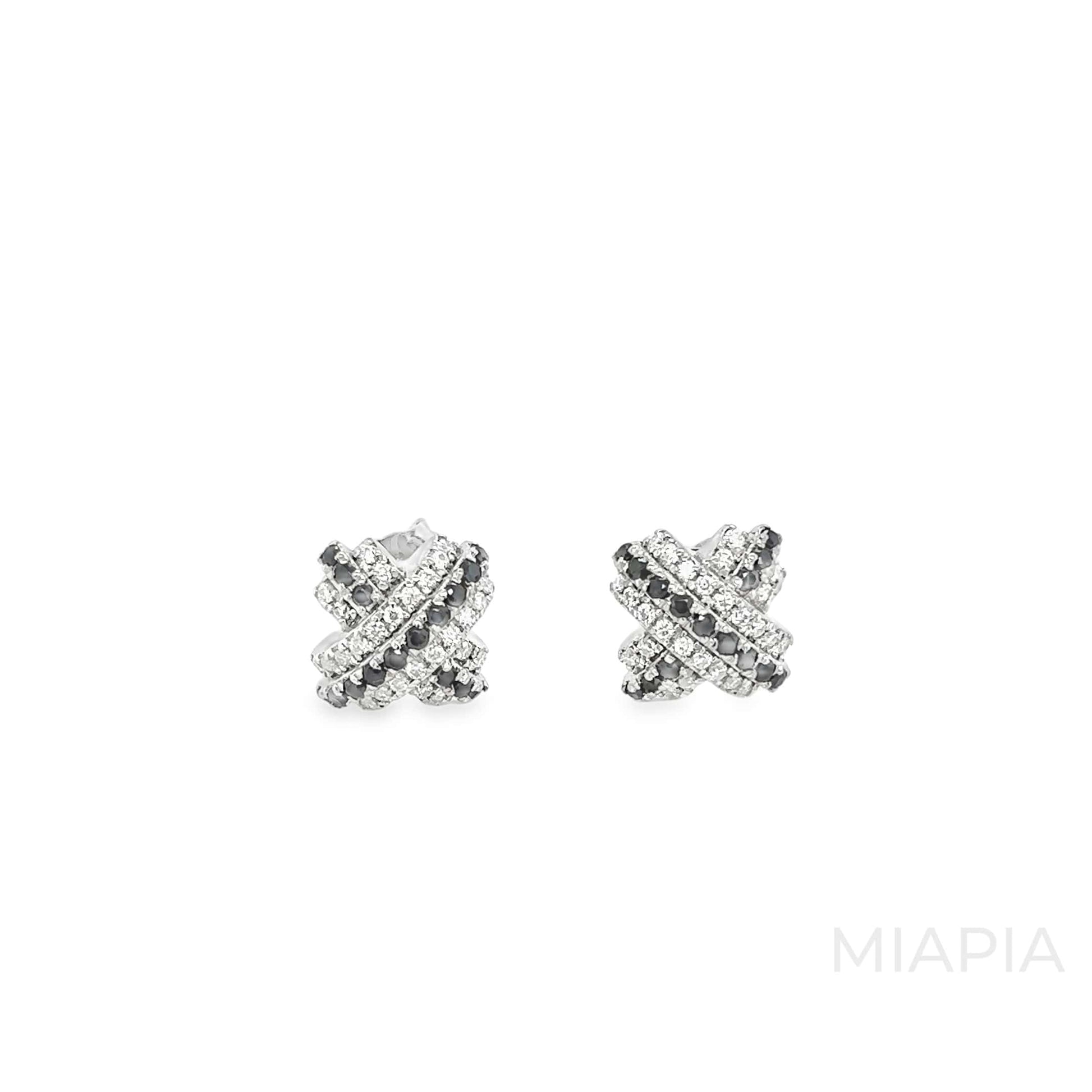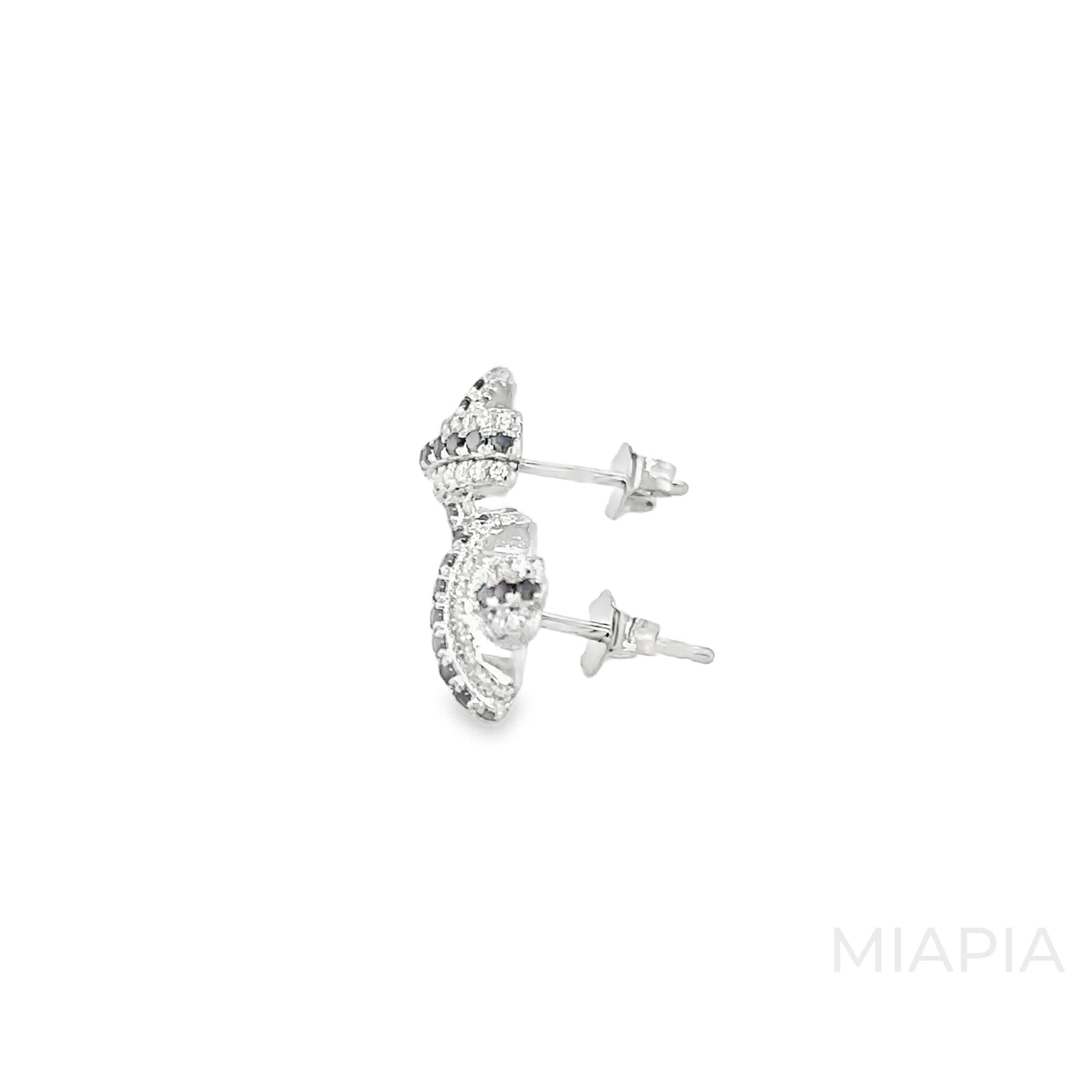 Embrace modern luxury with Miapia’s Twinkling Wrap Studs. These radiant earrings feature an intricate crisscross design crafted from rhodium-plated sterling silver, delicately set with shimmering moissanite diamonds that capture light from every angle. The elegant wrap-around style evokes sophistication while remaining timelessly chic, making them the perfect statement piece for any occasion.