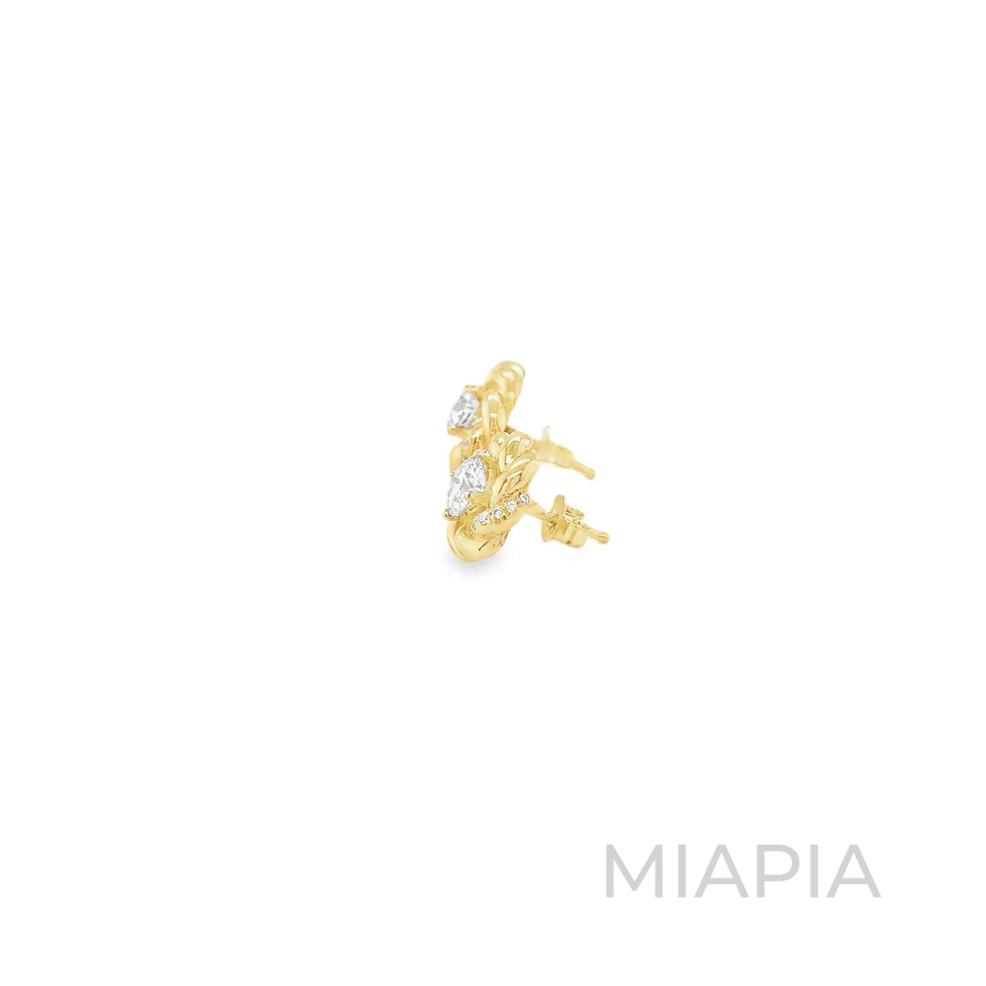 The Twisted Elegance Studs from Miapia offer a refined touch of artistry and sophistication. Featuring a dazzling round moissanite diamond at the center, embraced by a twisted rope-inspired vermeil gold design, these studs exude timeless charm. Perfect for adding a subtle yet luxurious sparkle to your everyday look or elevating your evening attire, these demi-fine jewellery pieces are a must-have in your collection.