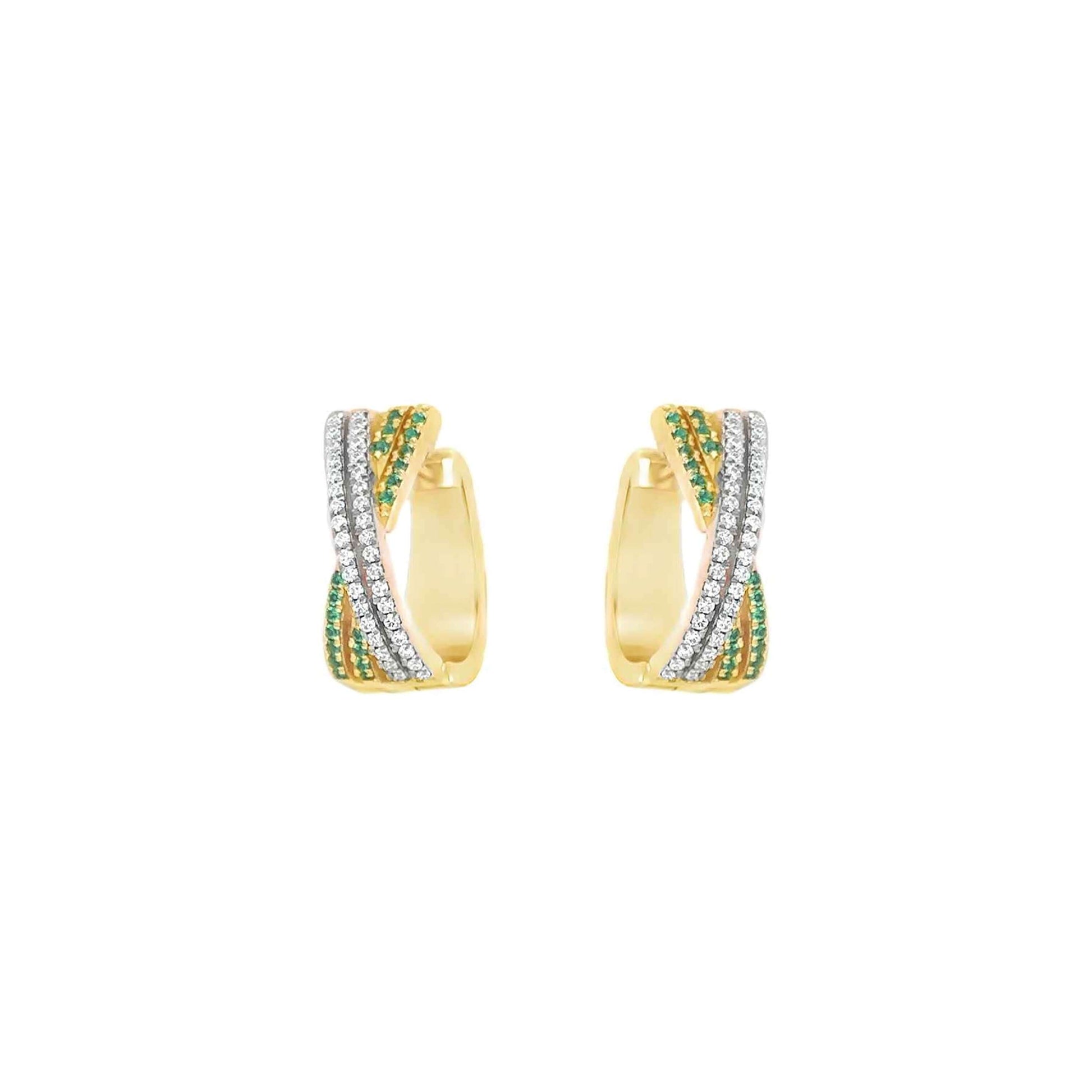 Add a vibrant touch to your collection with the Verdant Twist Earrings by Miapia. These unique huggie-style earrings feature intertwined rows of sparkling moissanites and vivid green stones set in lustrous vermeil gold. The crossover design creates a dynamic visual effect, making these earrings a perfect blend of elegance and color. Ideal for special occasions or as a statement piece for everyday wear, these earrings embody Miapia’s commitment to sustainable and stylish demi-fine jewellery.