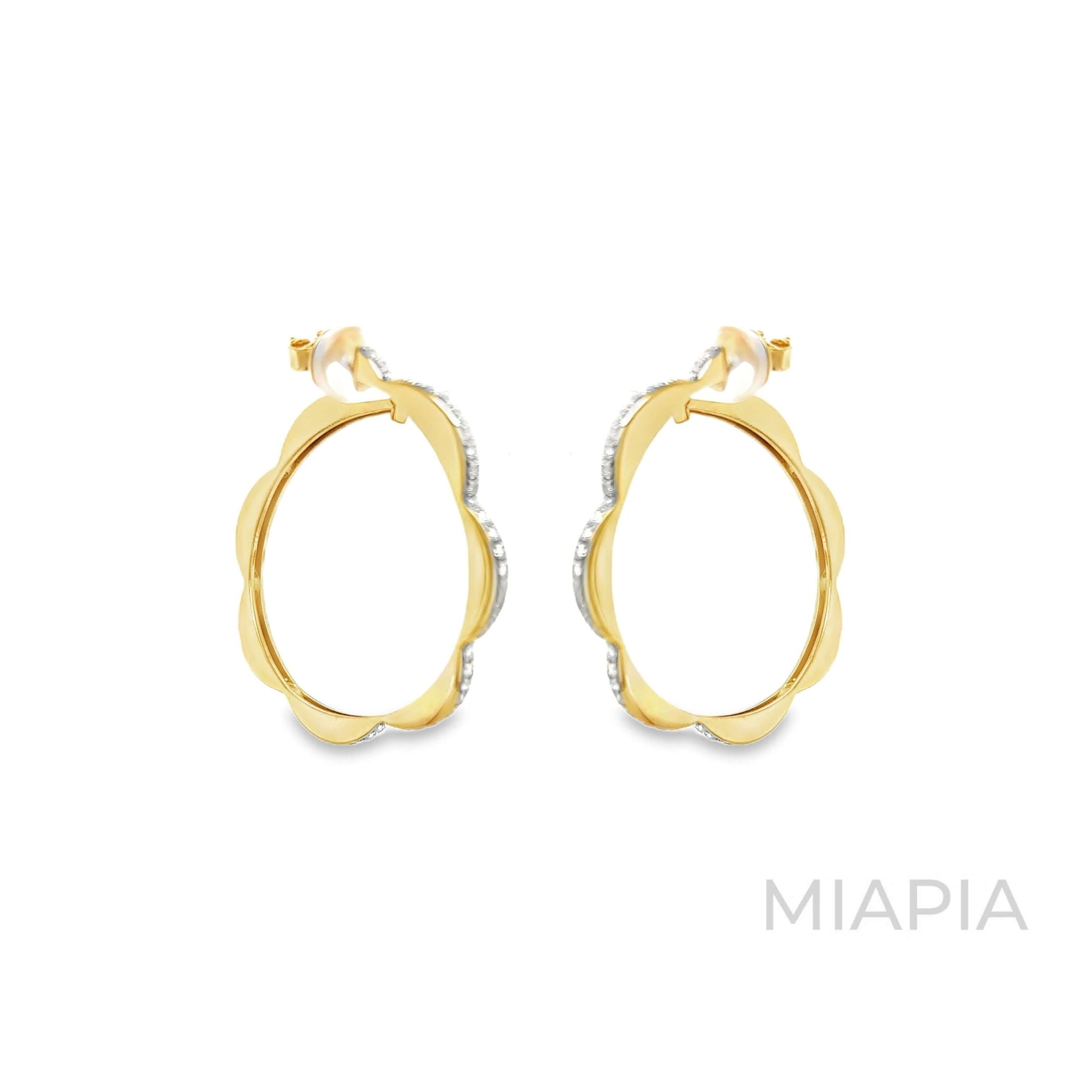 Miapia’s Wave Double-Sided Pave Hoops combine fluid elegance with striking contrast. The scalloped silhouette shines with moissanite diamonds on the front, while the back flaunts a polished gold finish. Designed for a unique look from every angle, these versatile hoops in vermeil gold over sterling silver are perfect for making a modern, artistic statement.